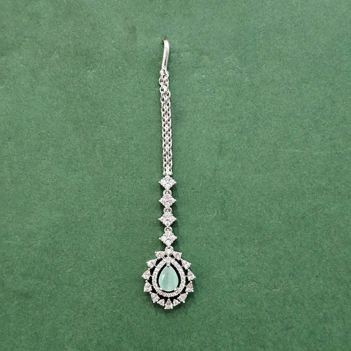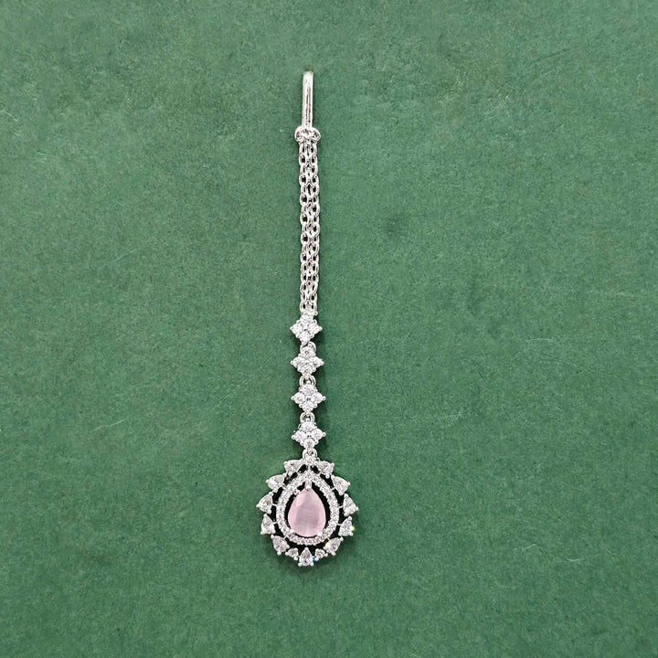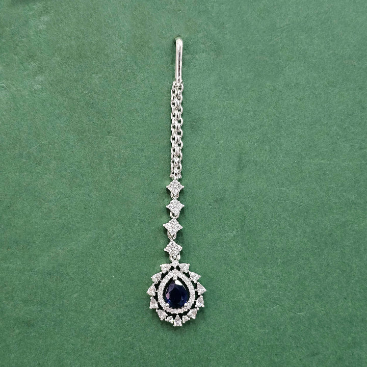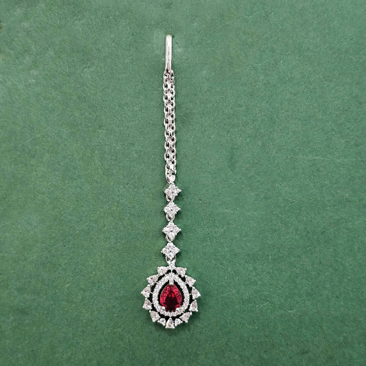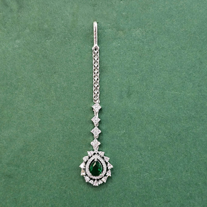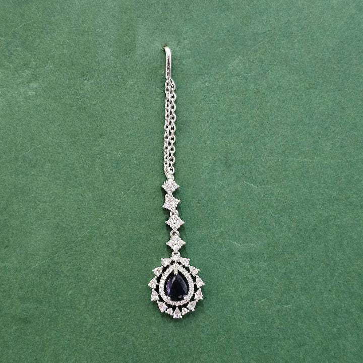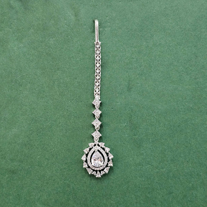 Weight: 5.0 Grams, Height = 82 mm || Width = 16 mm,Short Tikka,Rhodium Plating,American Diamond Maang Tikka
