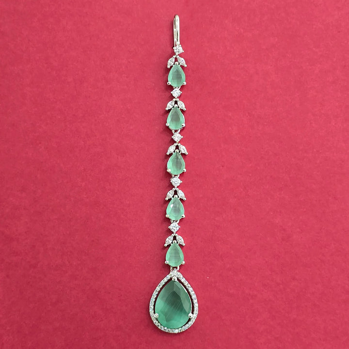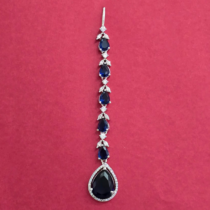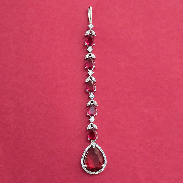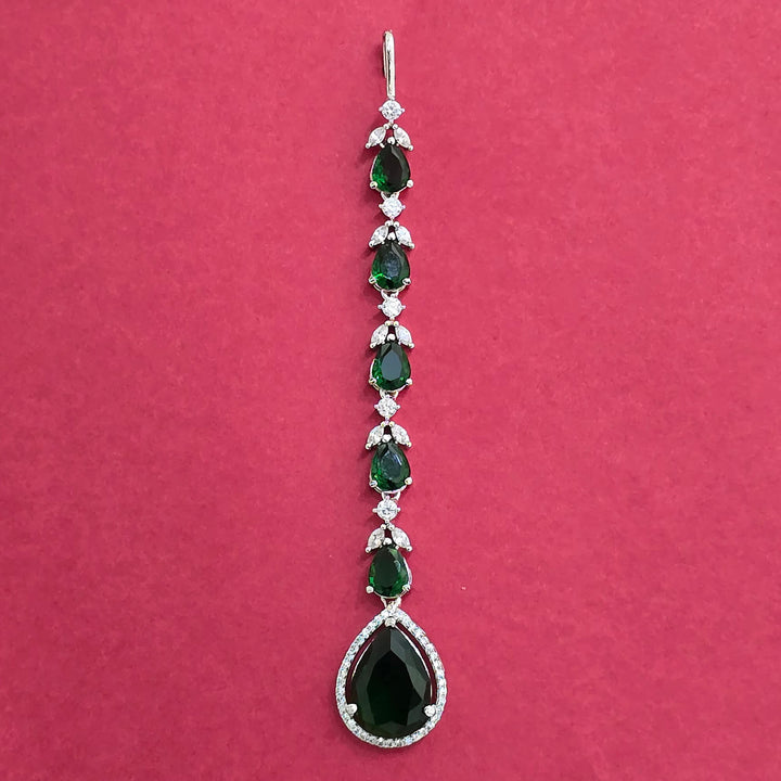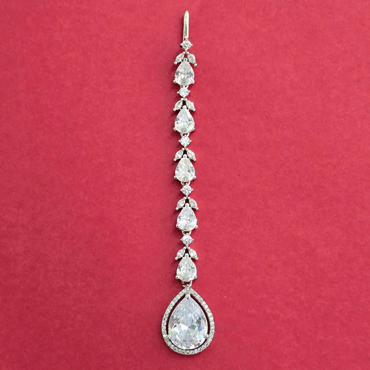 Weight: 11.0 Grams, Height = 110 mm || Width = 15 mm,Latest Design,Rhodium Plating,American Diamond Maang Tikka