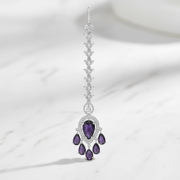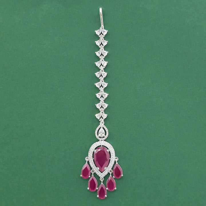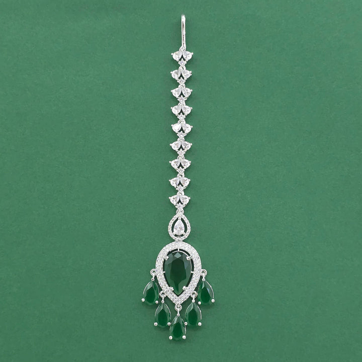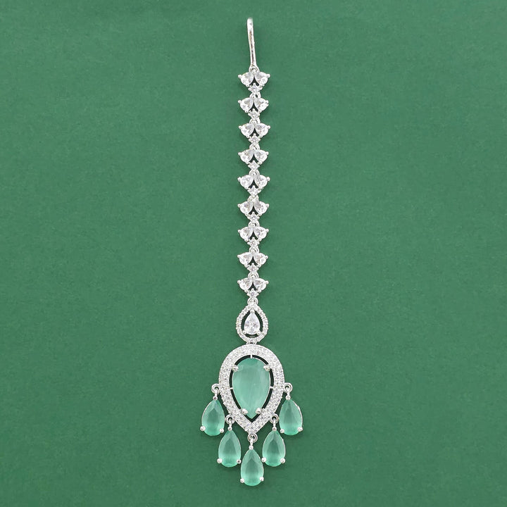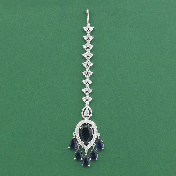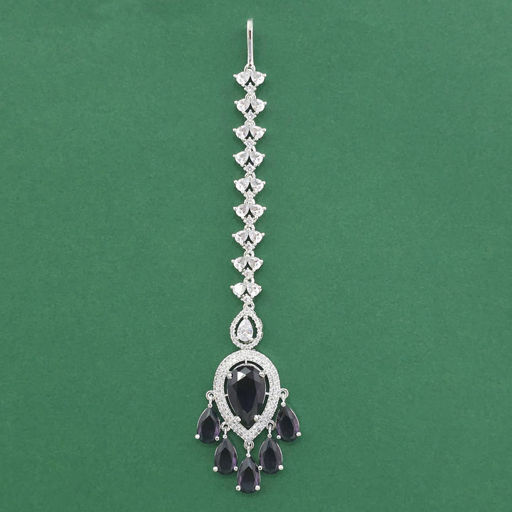 Weight: 15.0 Grams, Height = 125 mm || Width = 30 mm,Handmade Design,Rhodium Plating,American Diamond Maang Tikka