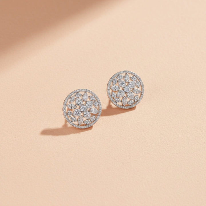 Weight: 7.0 Grams, Height = 19 mm || Width = 19 mm,Tops,2 Tone Plating,Rhodium Plating,American Diamond Earring