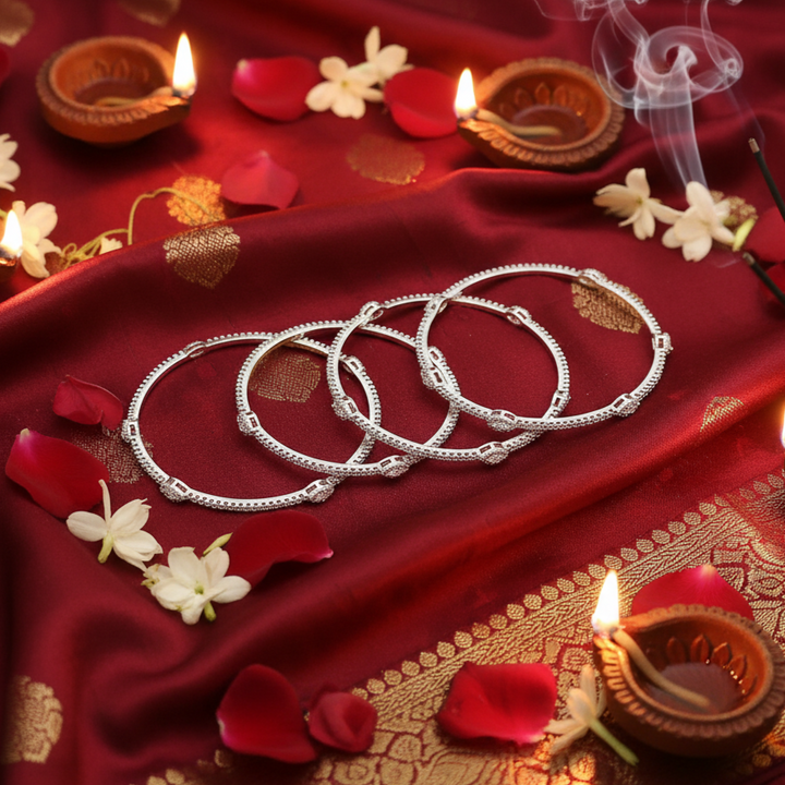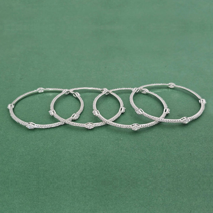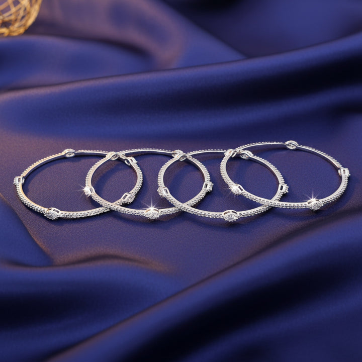 Weight: 35.0 Grams, 4 Pc Bangle,Delicate Design,Rhodium Plating,American Diamond Bangle