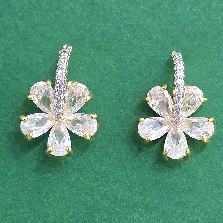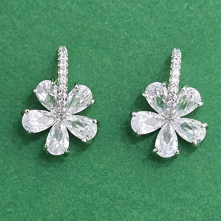 Weight: 4.0 Grams, Height = 15 mm || Width = 10 mm,Tops,2 Tone Plating,Rhodium Plating,American Diamond Earring
