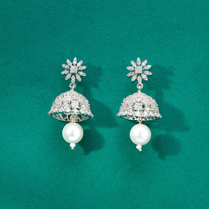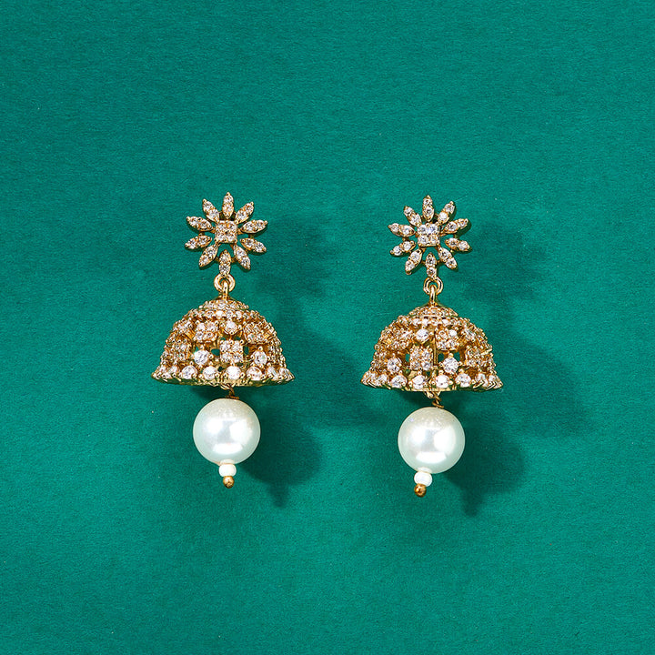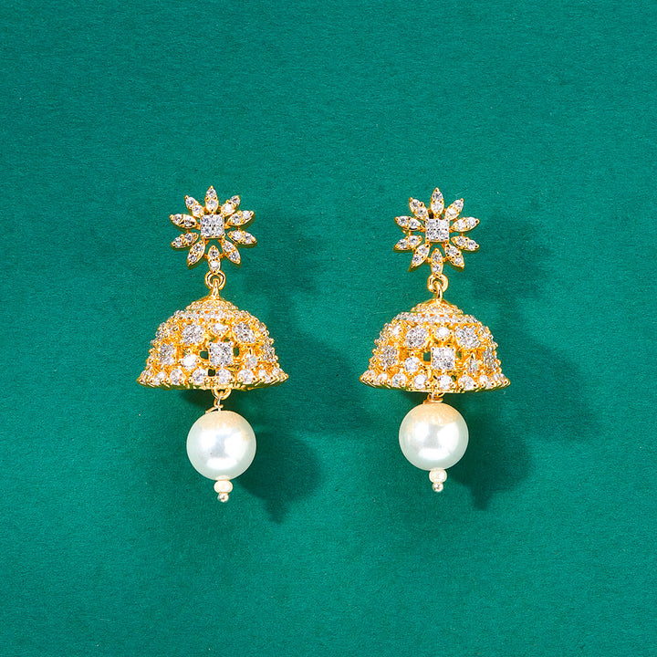 Weight: 10.0 Grams, Height = 35 mm || Width = 17 mm,Pearl Jhumki,American Diamond Earring