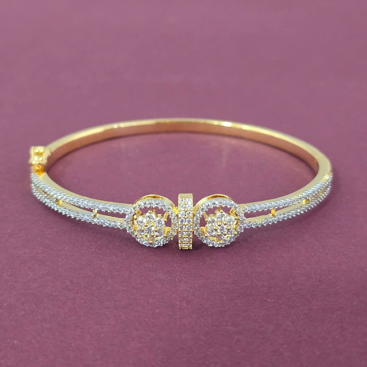 Weight: 12.0 Grams, Height = 47 mm || Width = 56 mm,Openable Kada,2 Tone Plating,Rhodium Plating,American Diamond Kada
