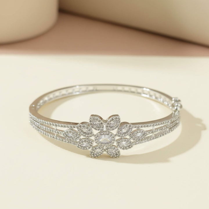 442458 Cz Delicate Kada With 2 Tone Rhodium Plating