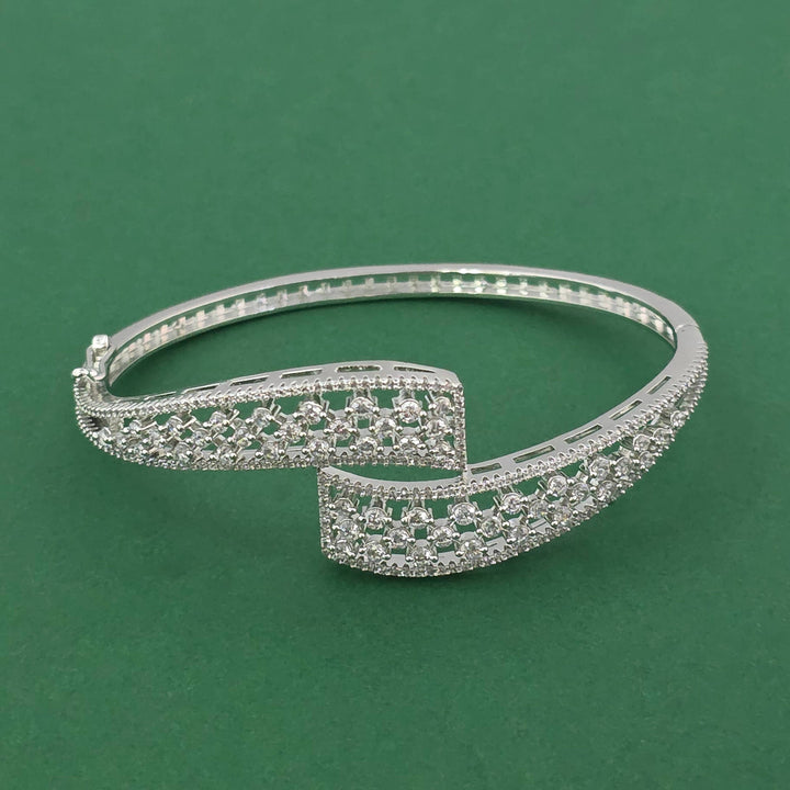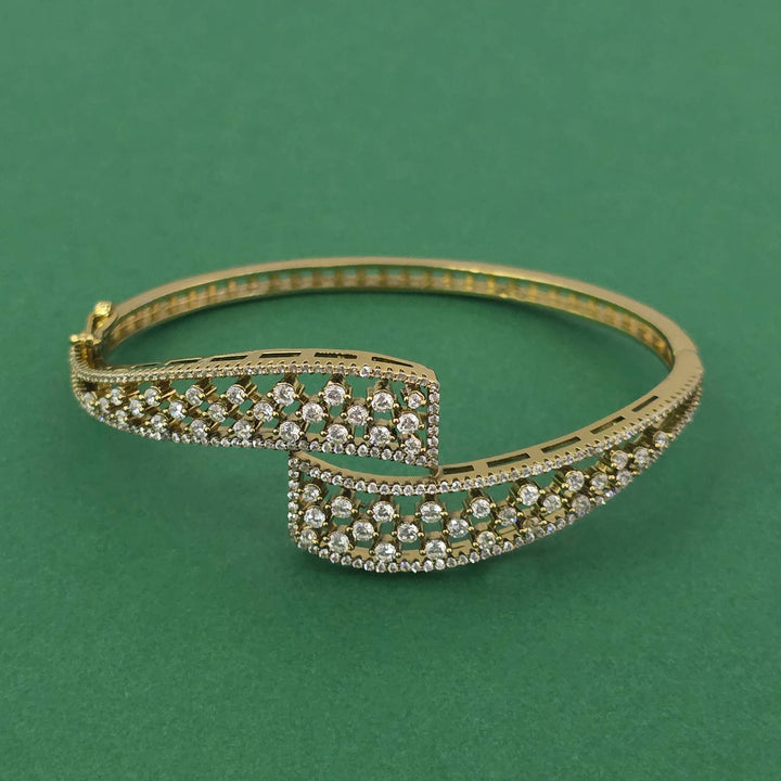 Weight: 12.0 Grams, Height = 46 mm || Width = 57 mm,Openable Kada,Mehndi Plating,2 Tone Plating,Rhodium Plating,American Diamond Kada