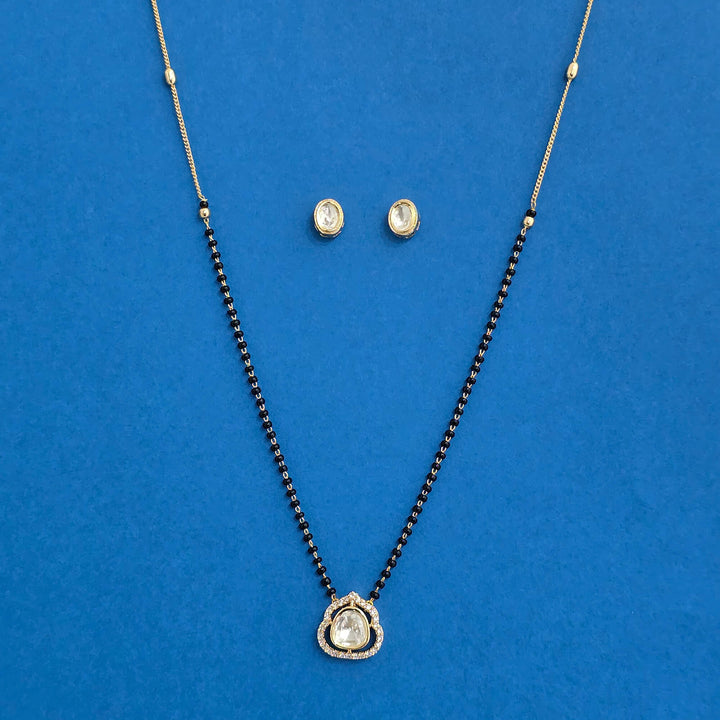 Weight: 14.0 Grams, Pendant Height = 16 mm || Width = 16 mm,Earring Height = 9 mm || Width = 6 mm,Length = 18 Inch,Gold Plating,American Diamond Mangal Sutra