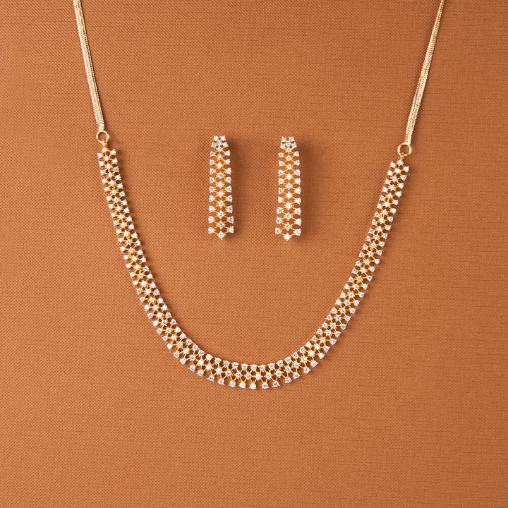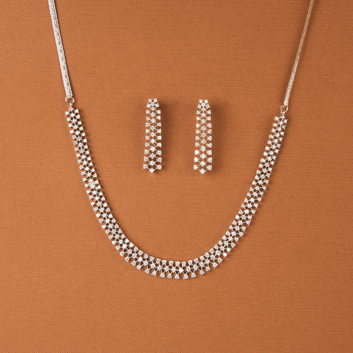 437641 Cz Delicate Necklace With 2 Tone Rhodium Plating