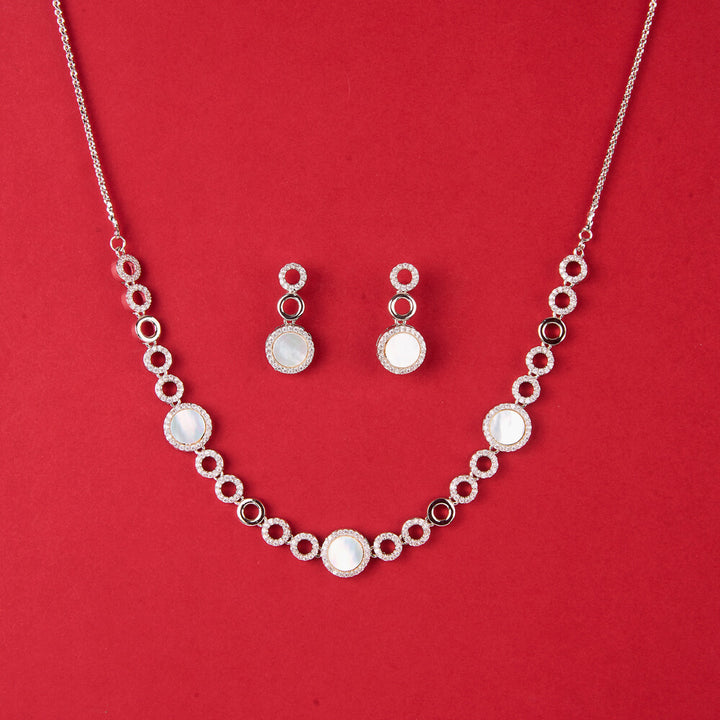 Weight: 22.0 Grams, Earring Height = 26 mm || Width = 12 mm,Regular Size And Adjustable,2 Tone Plating,Rhodium Plating,American Diamond Necklace Set