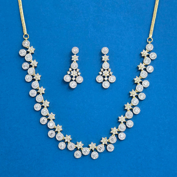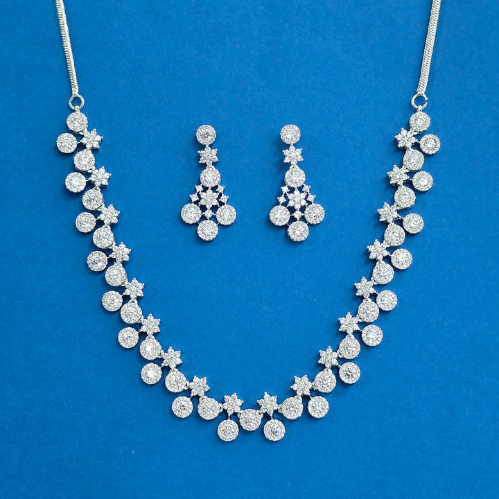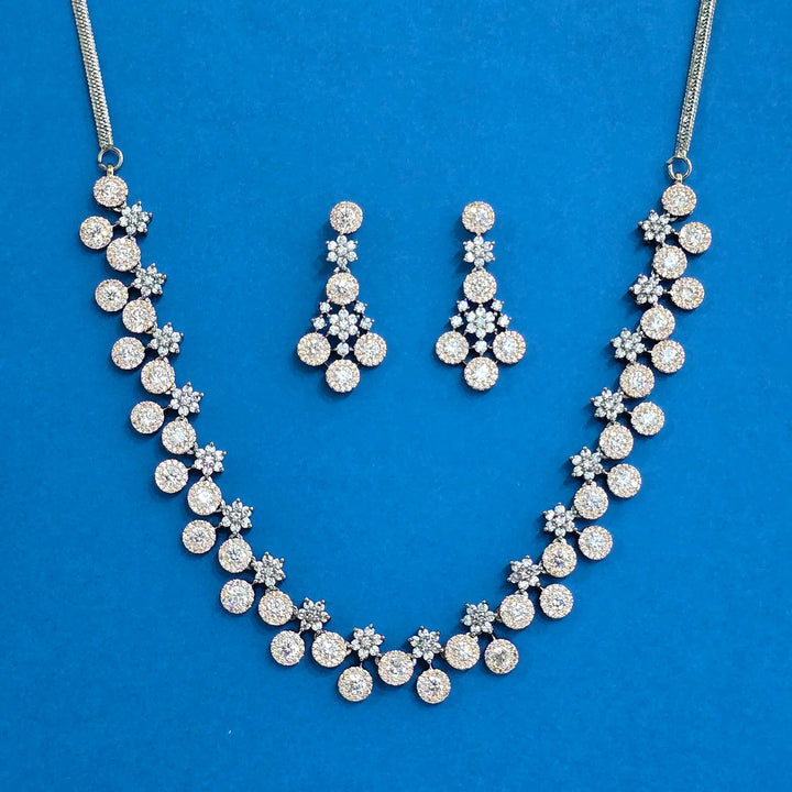 Weight: 42.0 Grams, Earring Height = 38 mm || Width = 18 mm,Regular Size And Adjustable,Latest Design,Black Rose Plating,2 Tone Plating,Rhodium Plating,American Diamond Necklace Set