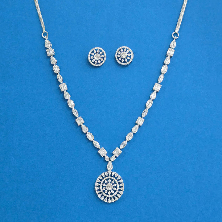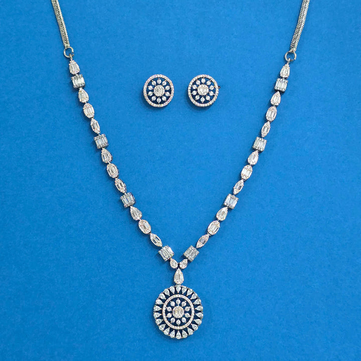 Weight: 24.0 Grams, Earring Height = 15 mm || Width = 13 mm,Regular Size And Adjustable,Handmade Design,Black Rose Plating,2 Tone Plating,Rhodium Plating,American Diamond Necklace Set