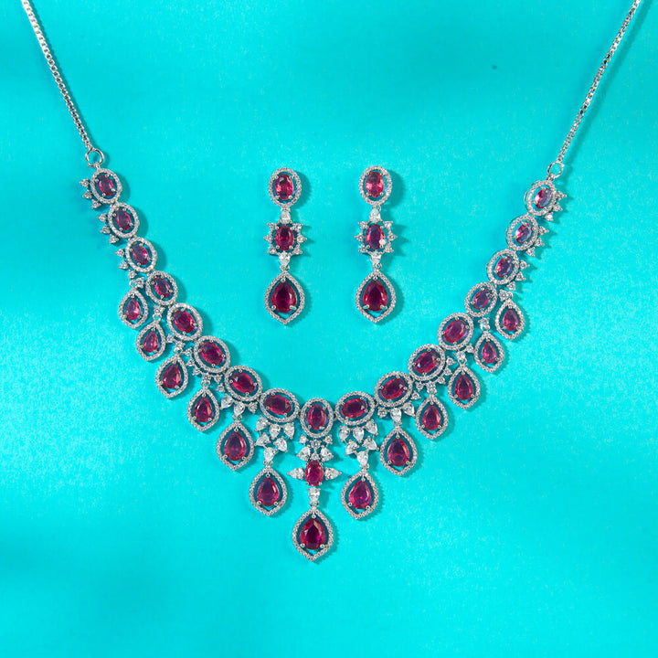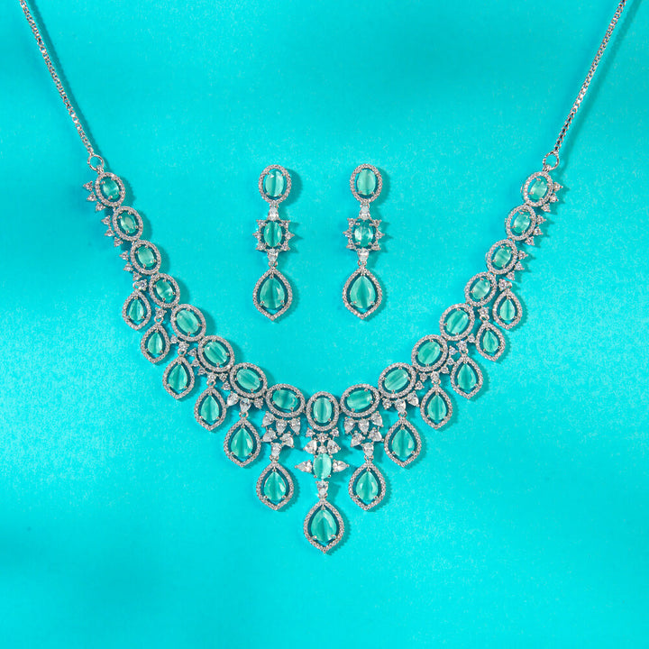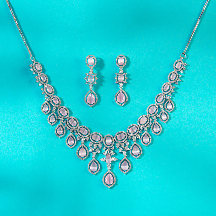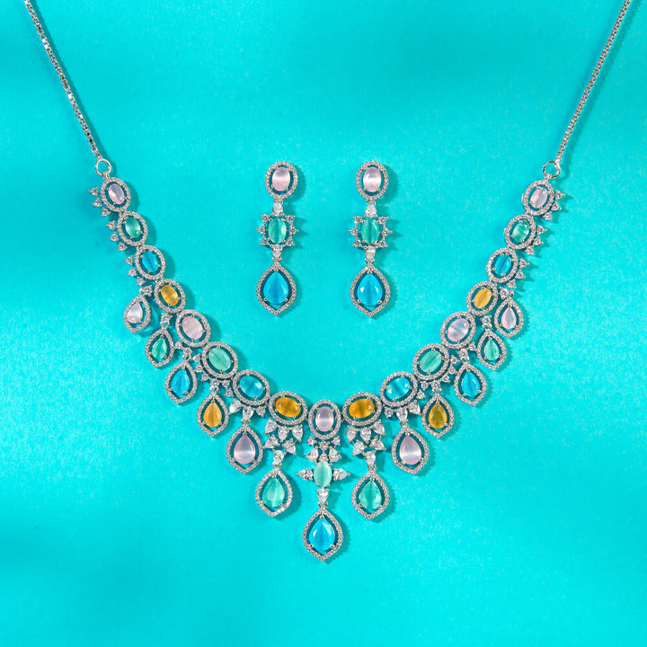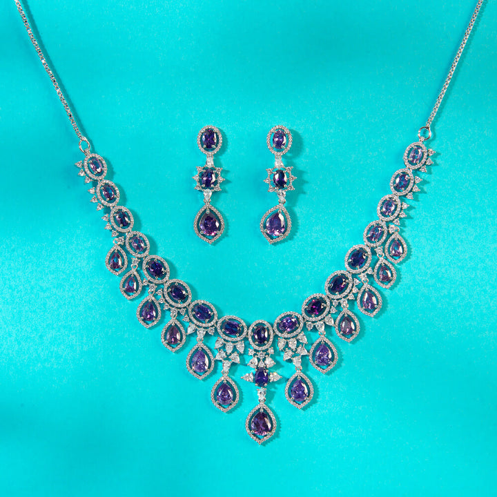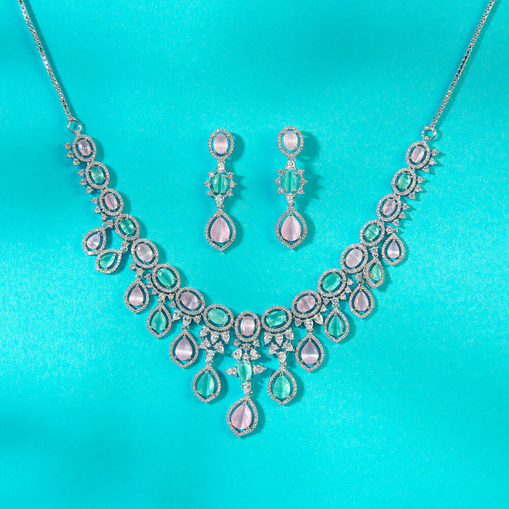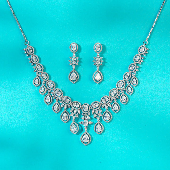 Weight: 50.0 Grams, Regular Size And Adjustable,Bollywood Look,American Diamond Necklace Set