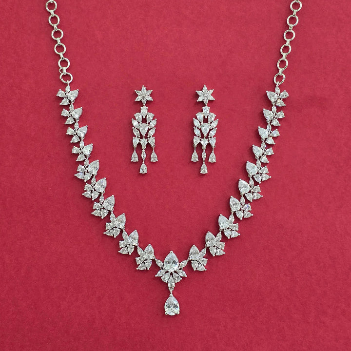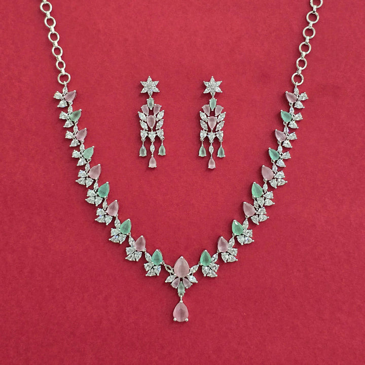 Weight: 38.0 Grams, Earring Height = 42 mm || Width = 11 mm,Regular Size And Adjustable,Handmade Design,American Diamond Necklace Set