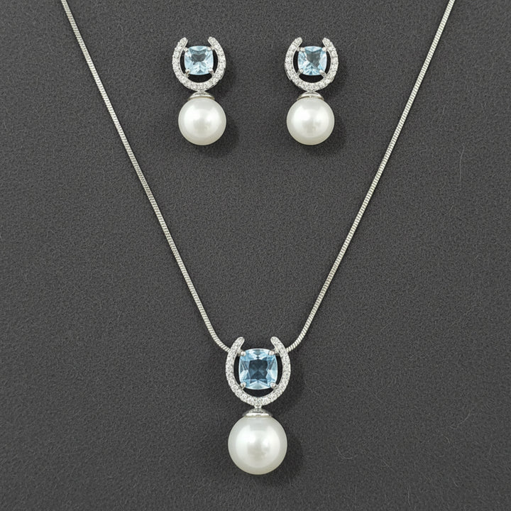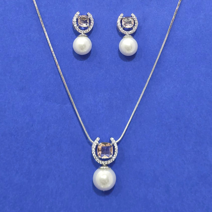 430290 Cz Delicate Pendant Set With 2 Tone Plating