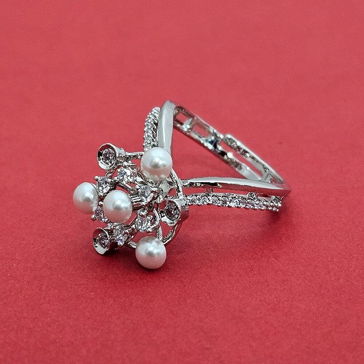 Weight: 6.0 Grams, Height = 15 mm || Width = 15 mm,Adjustable Ring,2 Tone Plating,Rhodium Plating,American Diamond Ring