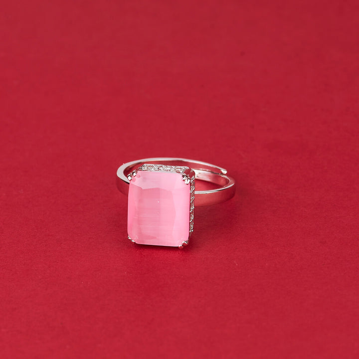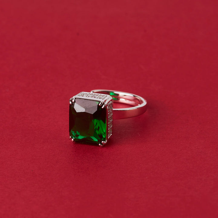 Weight: 6.0 Grams, Height = 11 mm || Width = 10 mm,Adjustable Ring,Rhodium Plating,American Diamond Ring