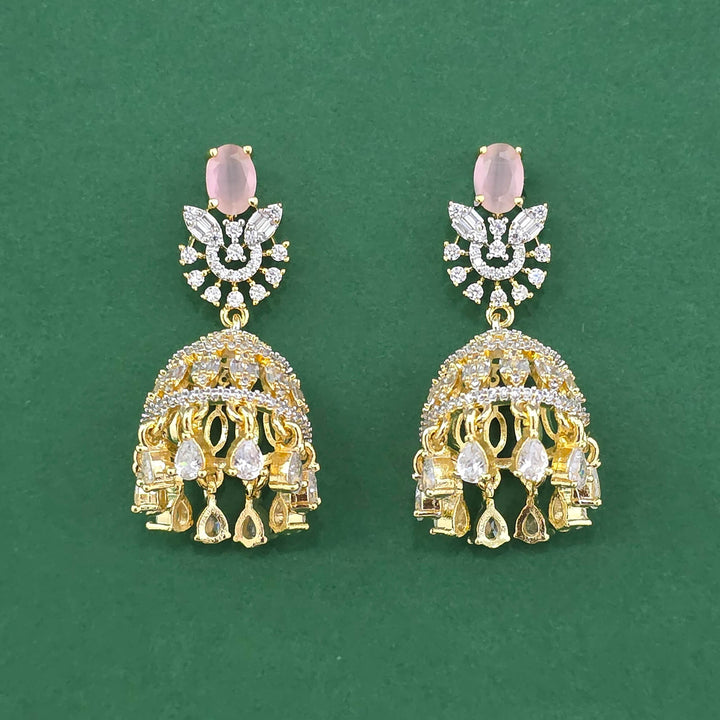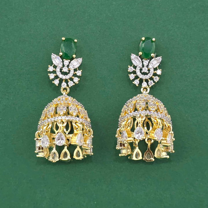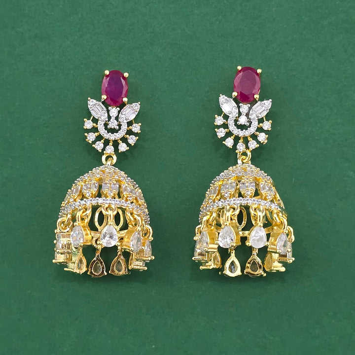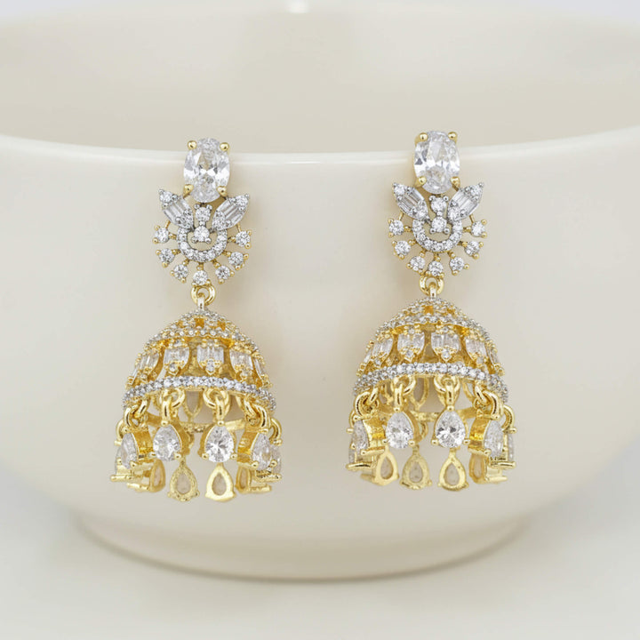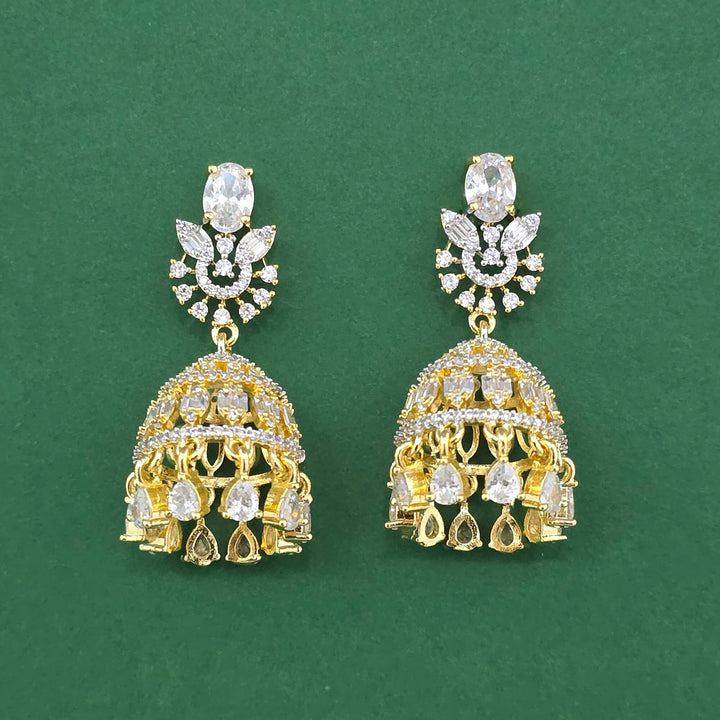 Weight: 13.0 Grams, Height = 39 mm || Width = 17 mm,Delicate Earring,2 Tone Plating,American Diamond Earring