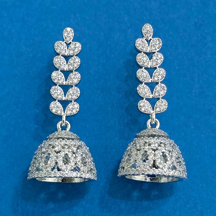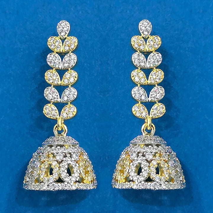 439673 Cz Jhumki With 2 Tone Rhodium Plating