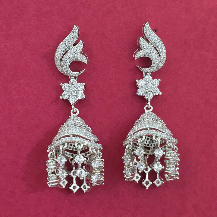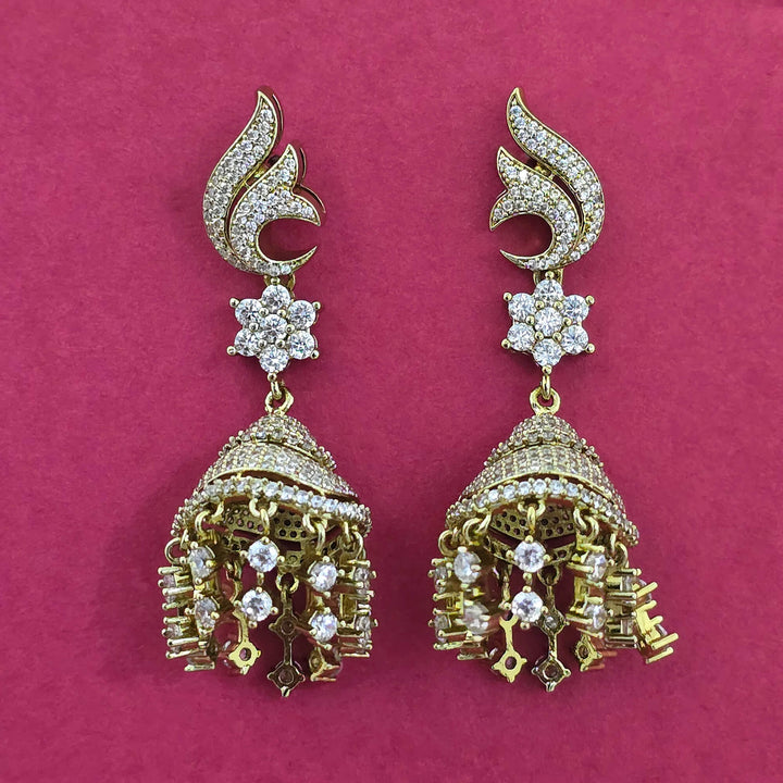 440918 Cz Jhumki With Mehndi 2 Tone Rhodium Plating