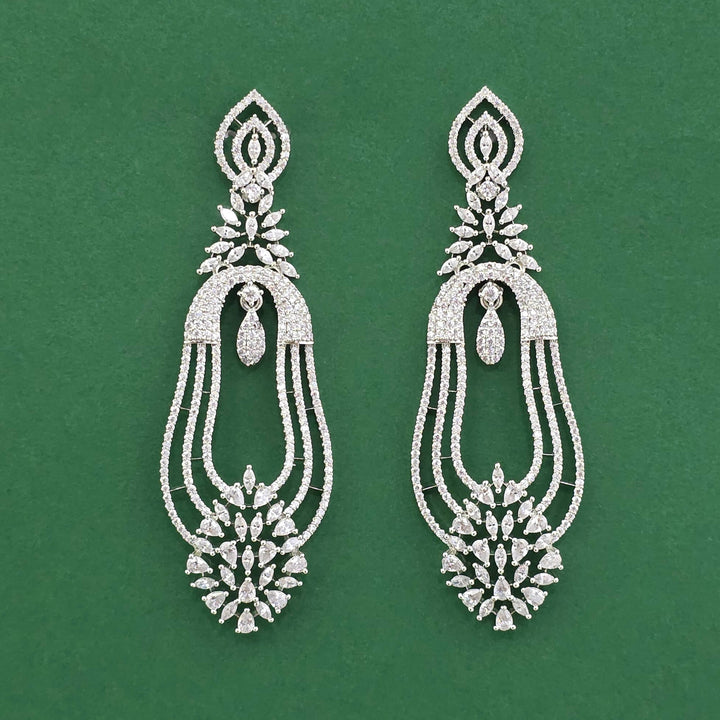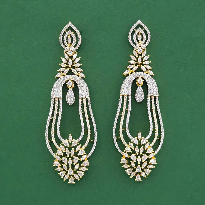 442345 Cz Long Earring With Mehndi 2 Tone Rhodium Plating