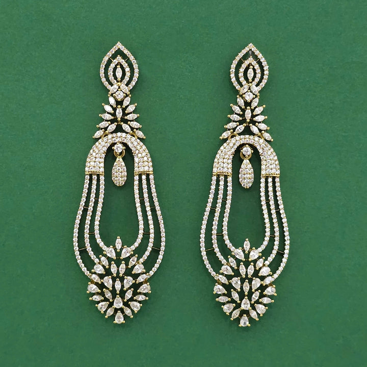 Weight: 20.0 Grams, Height = 70 mm || Width = 22 mm,Classic Design,Mehndi Plating,2 Tone Plating,Rhodium Plating,American Diamond Earring