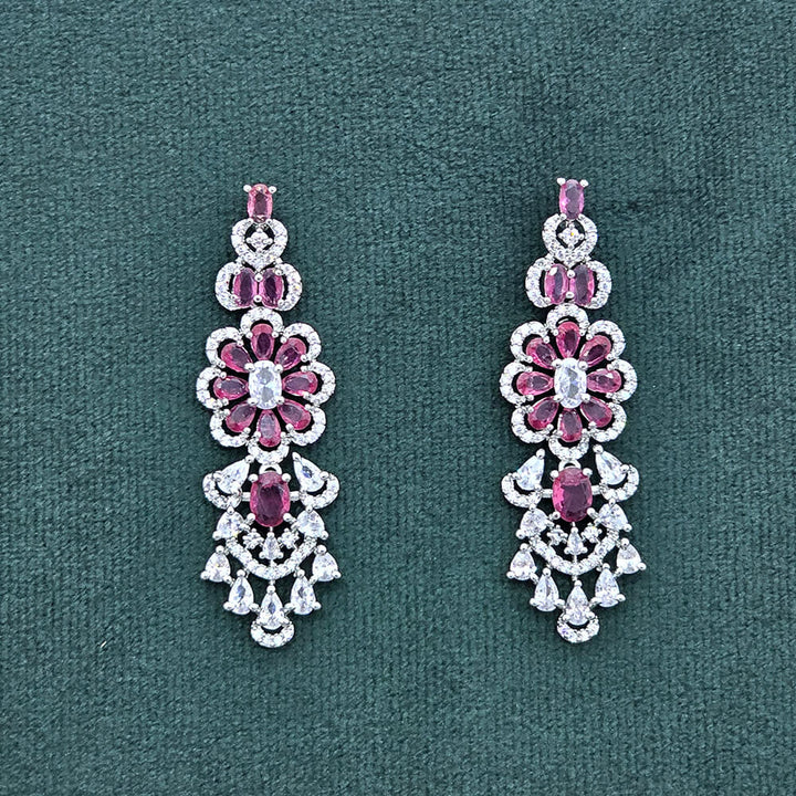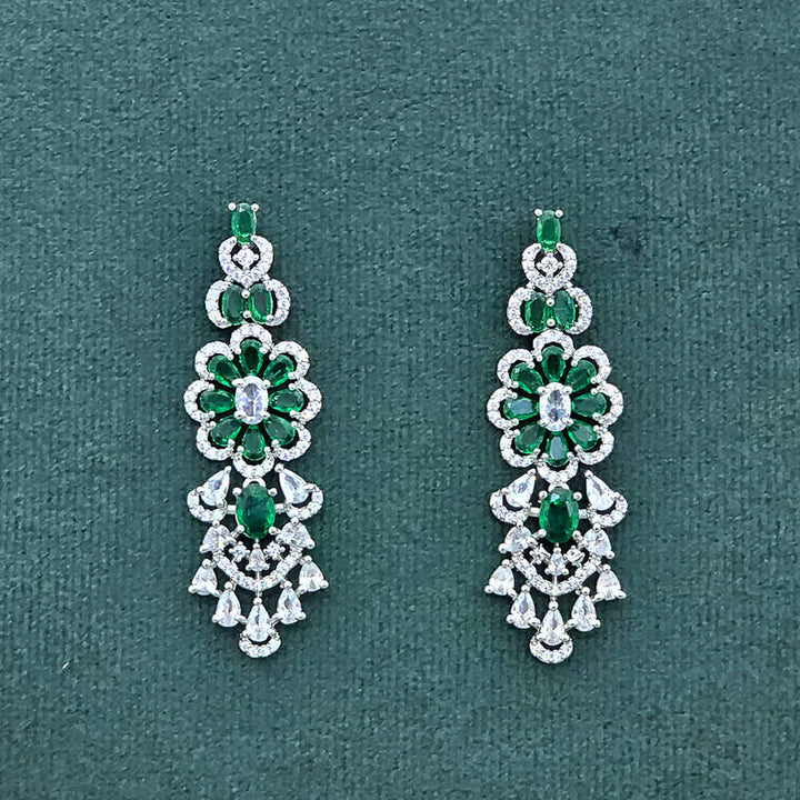 Weight: 16.0 Grams, Height = 58 mm || Width = 17 mm,Latest Design,Rhodium Plating,American Diamond Earring