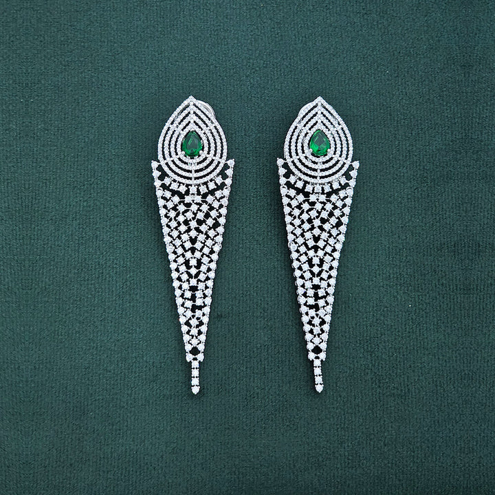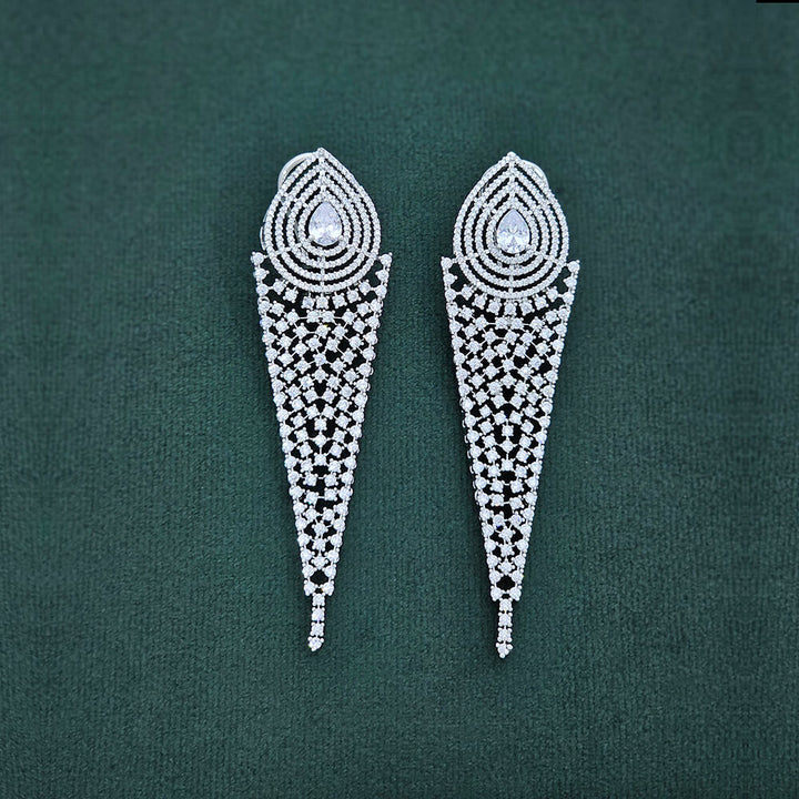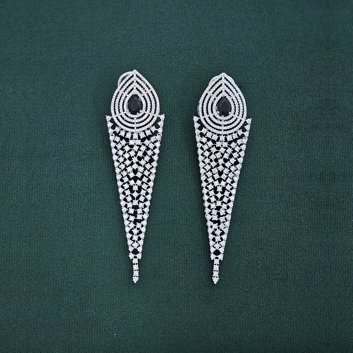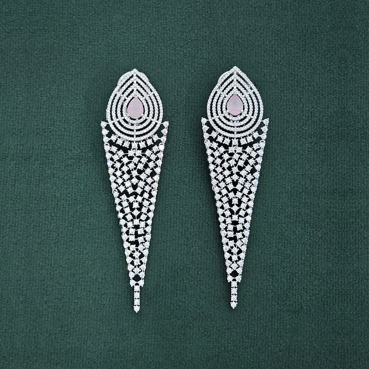 435933 Cz Long Earring With Rhodium Plating