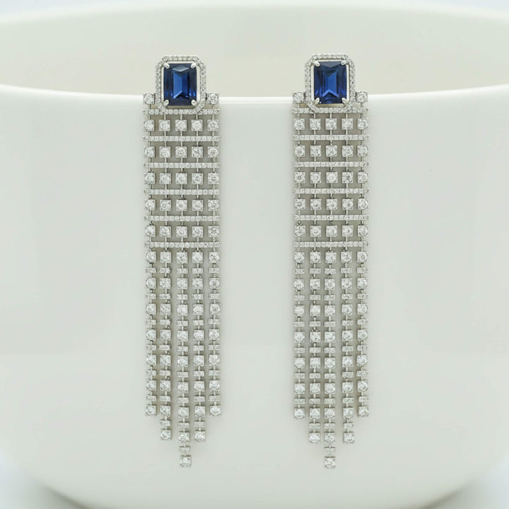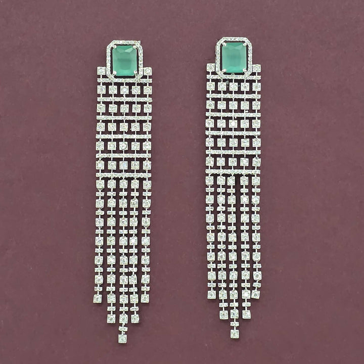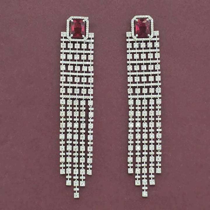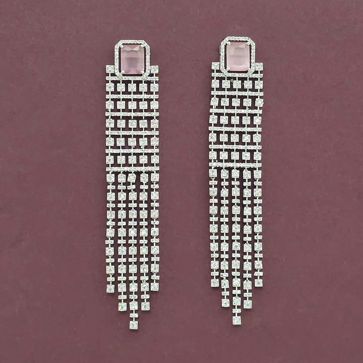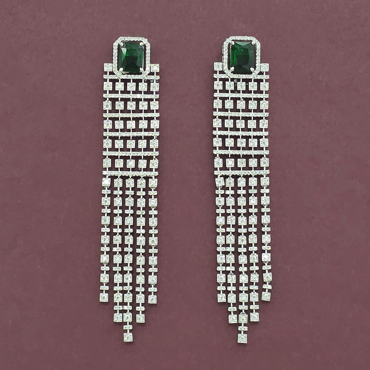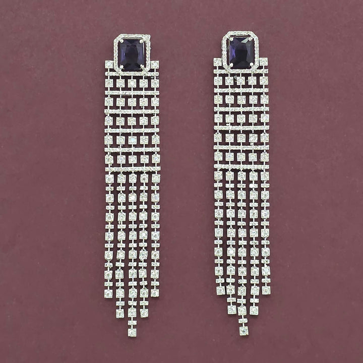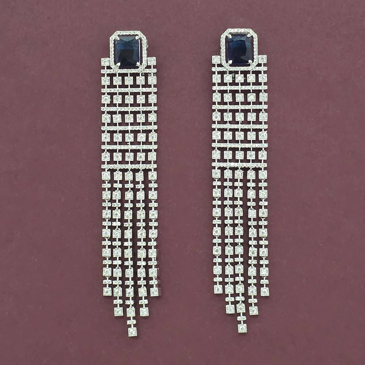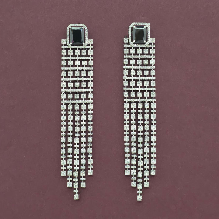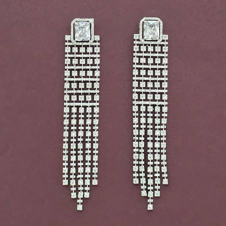 Weight: 38.0 Grams, Height = 100 Mm || Width = 18 Mm,Elegant Look,Rhodium Plating,American Diamond Earring