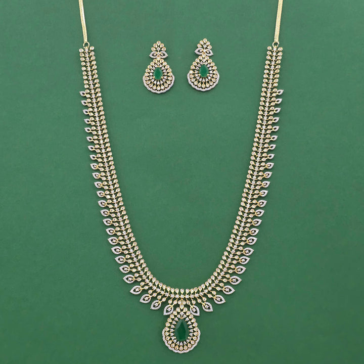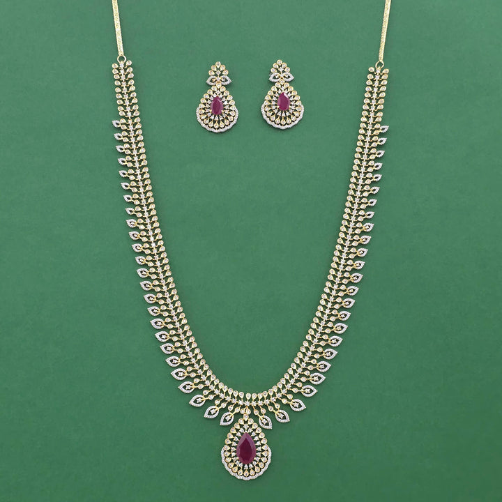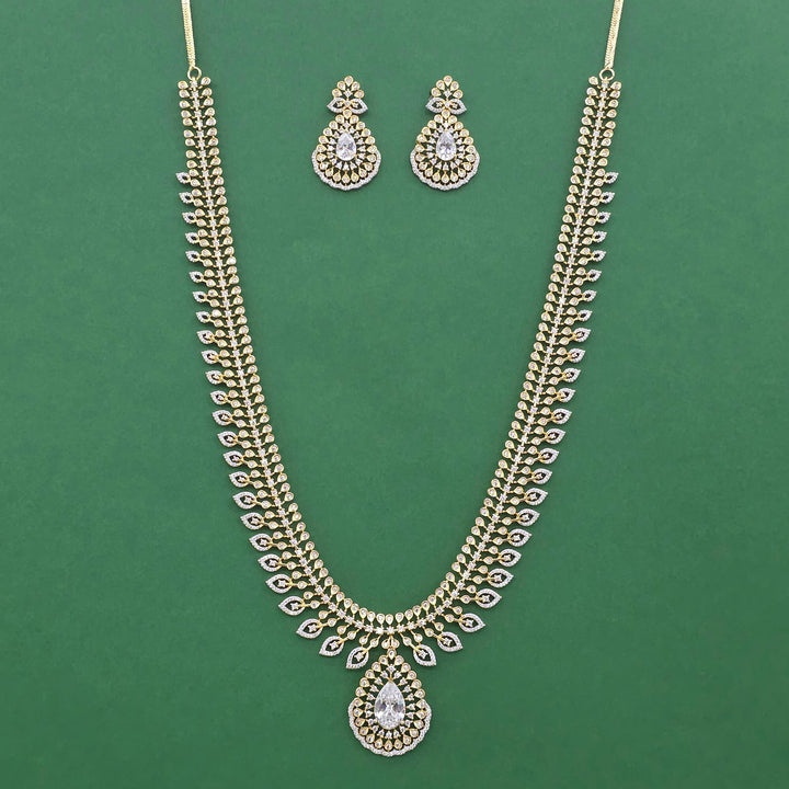 442510 Cz Long Necklace Set With 2 Tone Plating