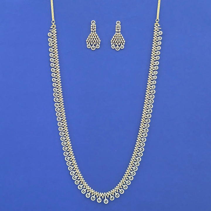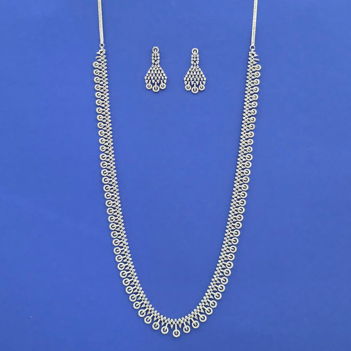 442507 Cz Long Necklace Set With 2 Tone Rhodium Plating