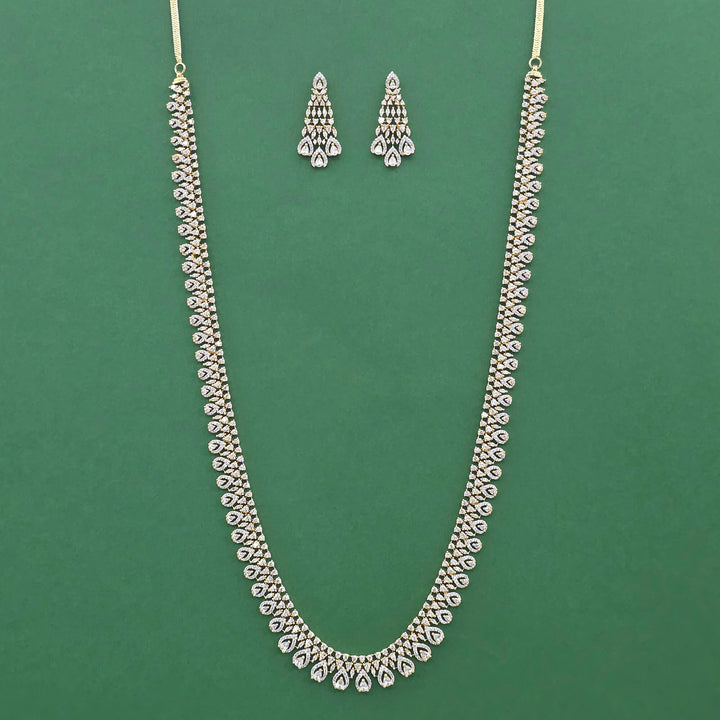 442509 Cz Long Necklace Set With 2 Tone Rhodium Plating