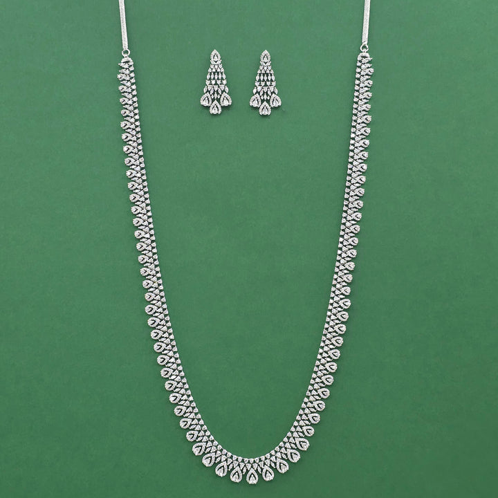Weight: 81.0 Grams, Length = 20 Inch,Height = 38 mm || Width = 17 mm,Classic Necklace,2 Tone Plating,Rhodium Plating,American Diamond Necklace Set