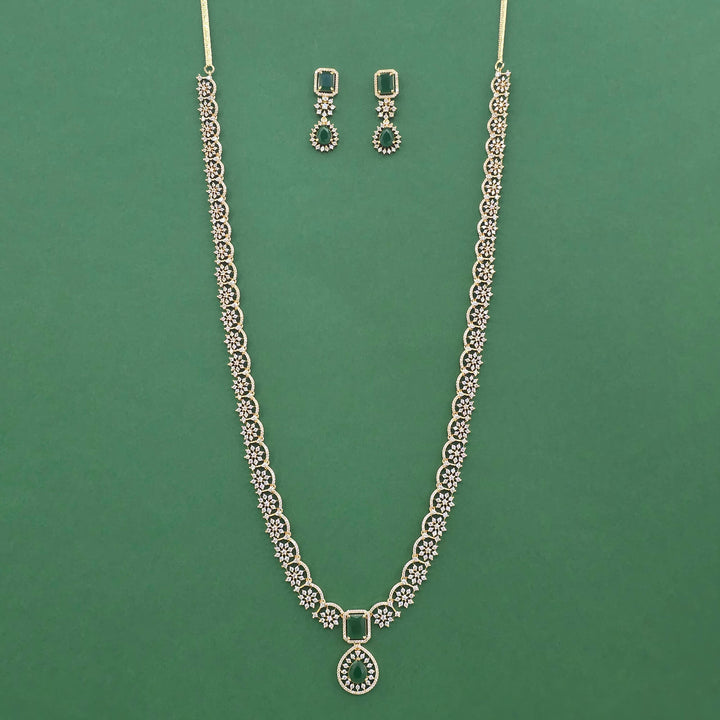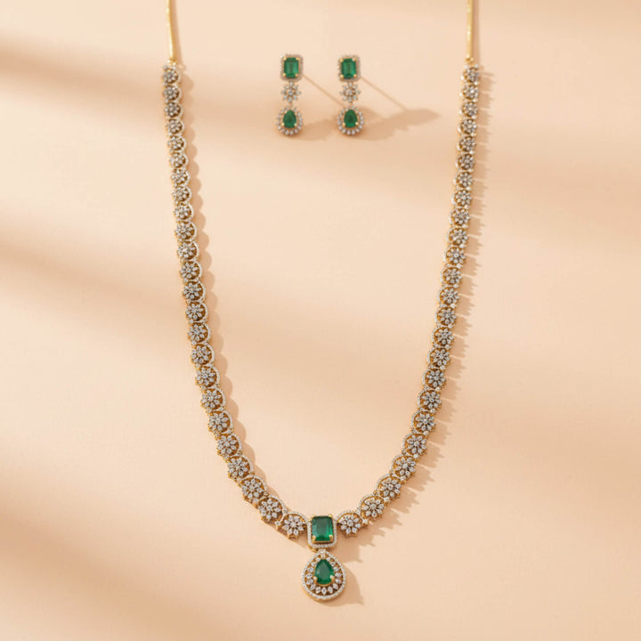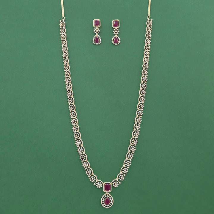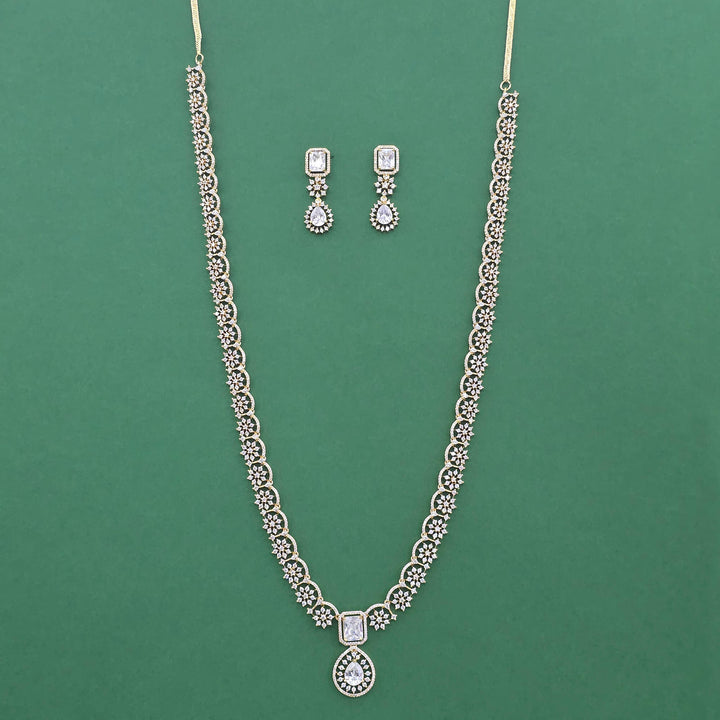 Weight: 74.0 Grams, Length = 20 Inch,Height = 40 mm || Width = 14 mm,Classic Necklace,Gold Plating,American Diamond Necklace Set
