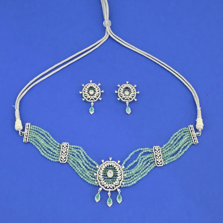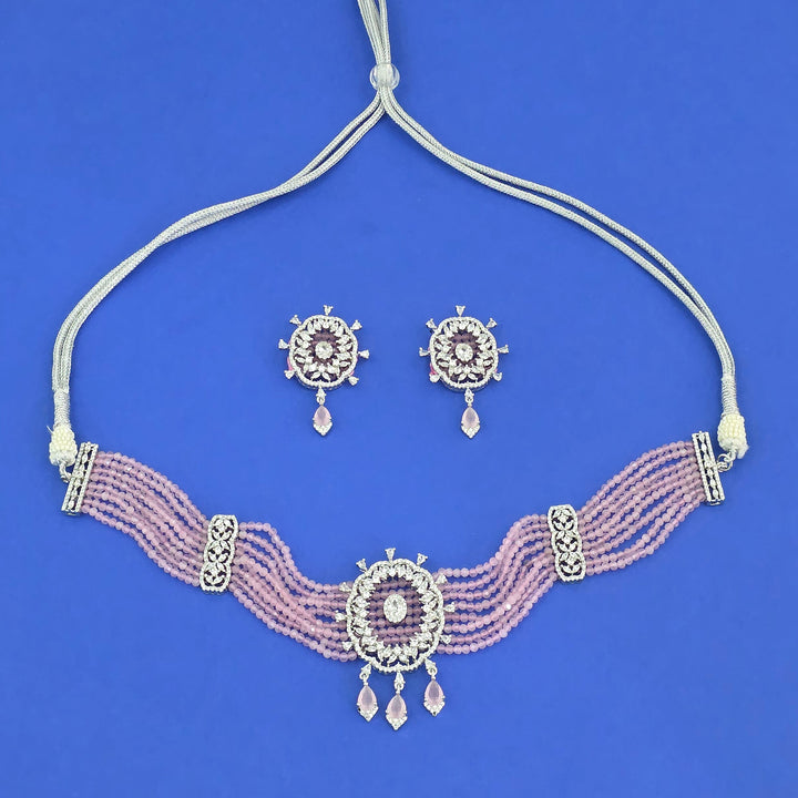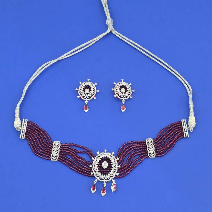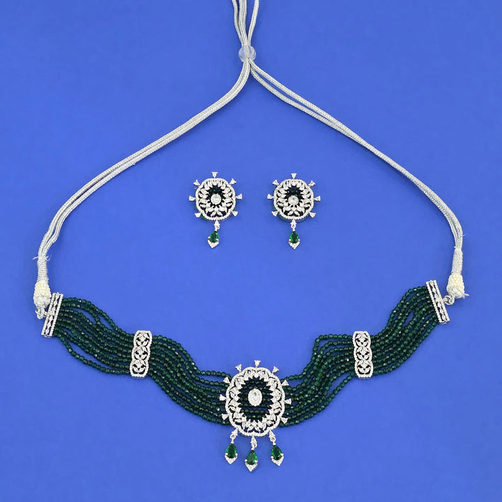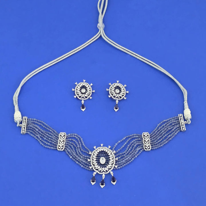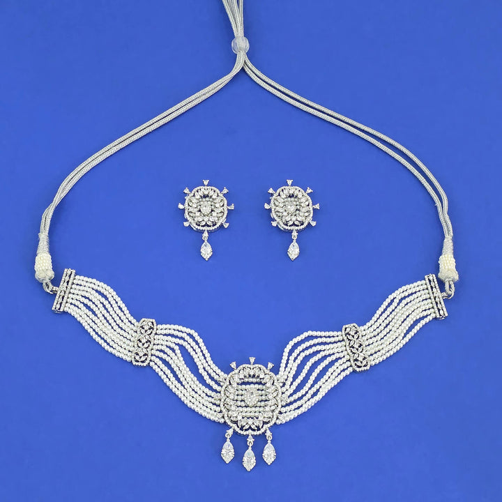 Weight: 52.0 Grams, Height = 45 mm || Width = 28 mm,Regular Size And Adjustable,Choker Necklace,Rhodium Plating,American Diamond Necklace Set
