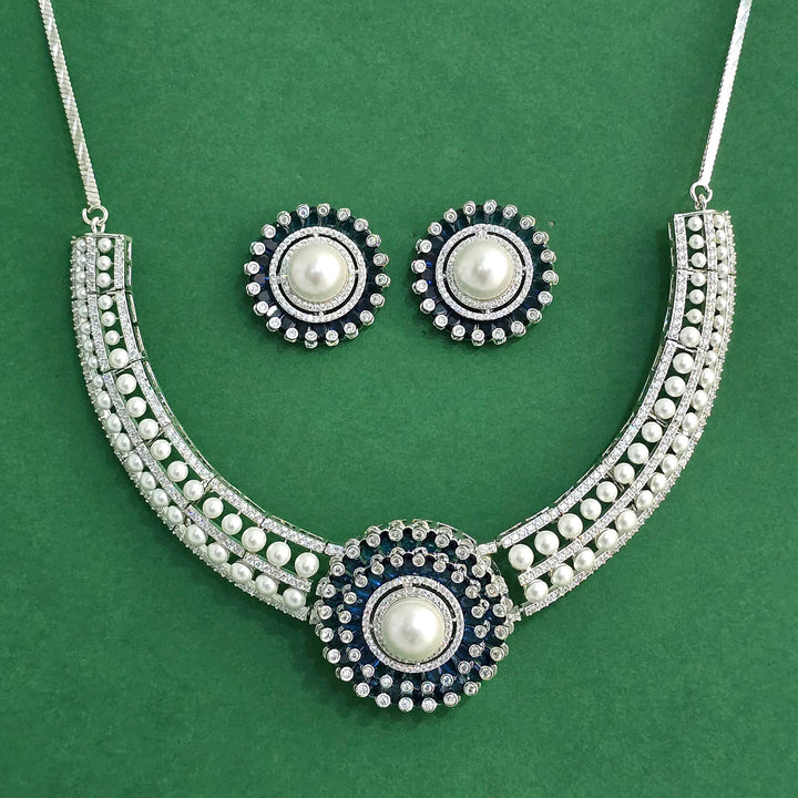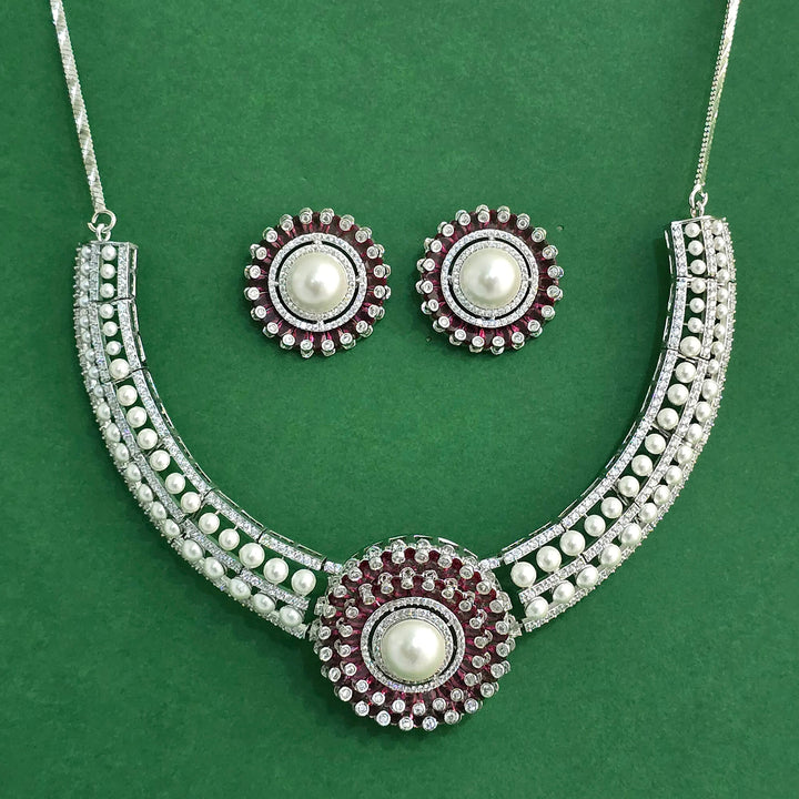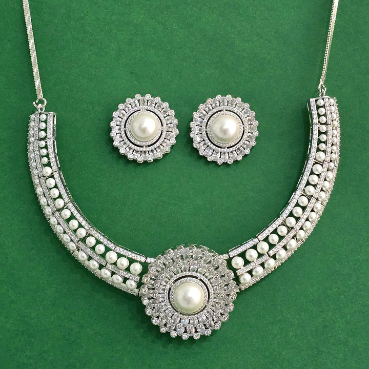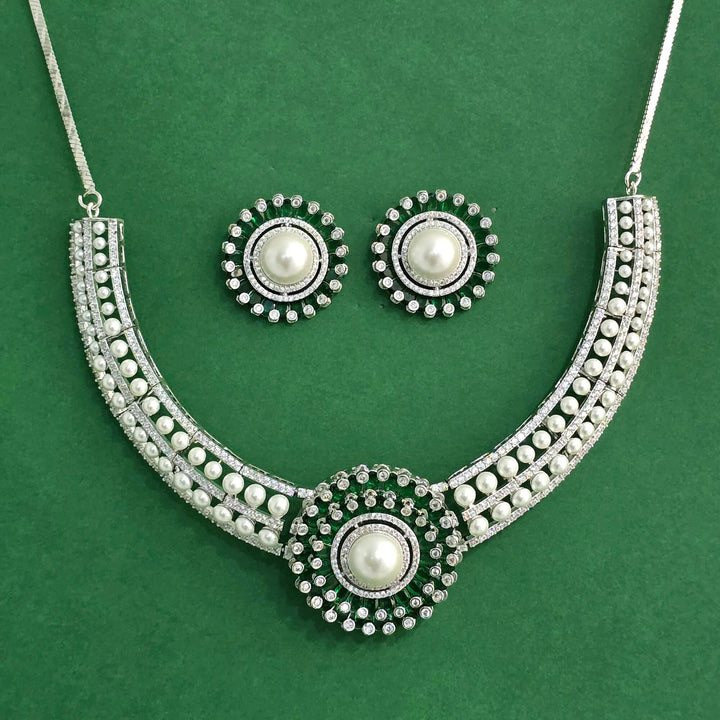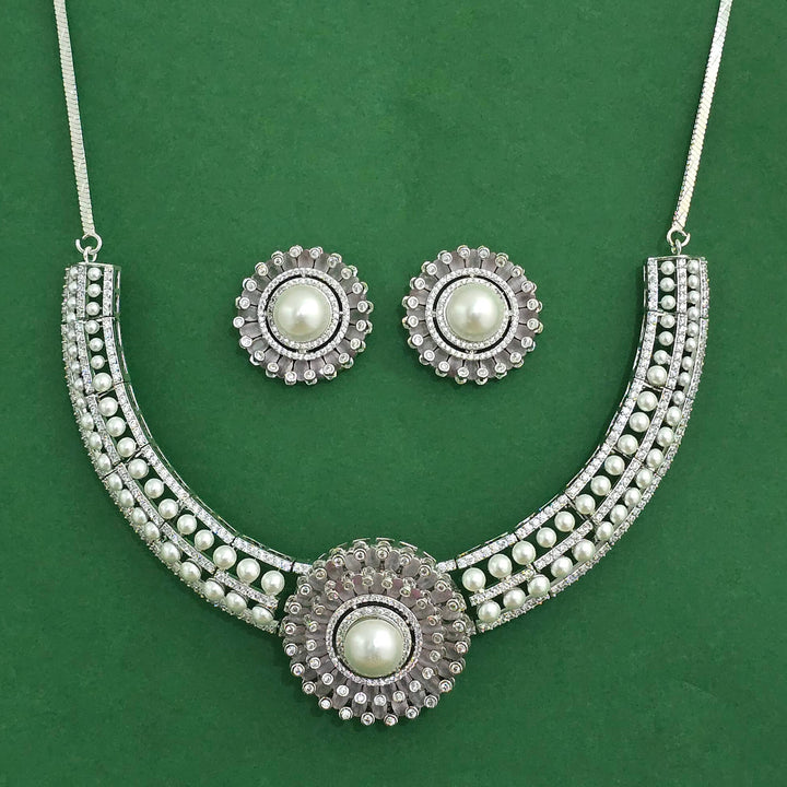 440998 Cz Moti Necklace Set With Rhodium Plating