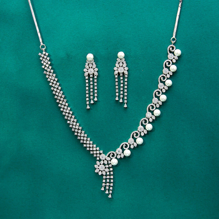434355 Cz Moti Necklace With 2 Tone Rhodium Plating
