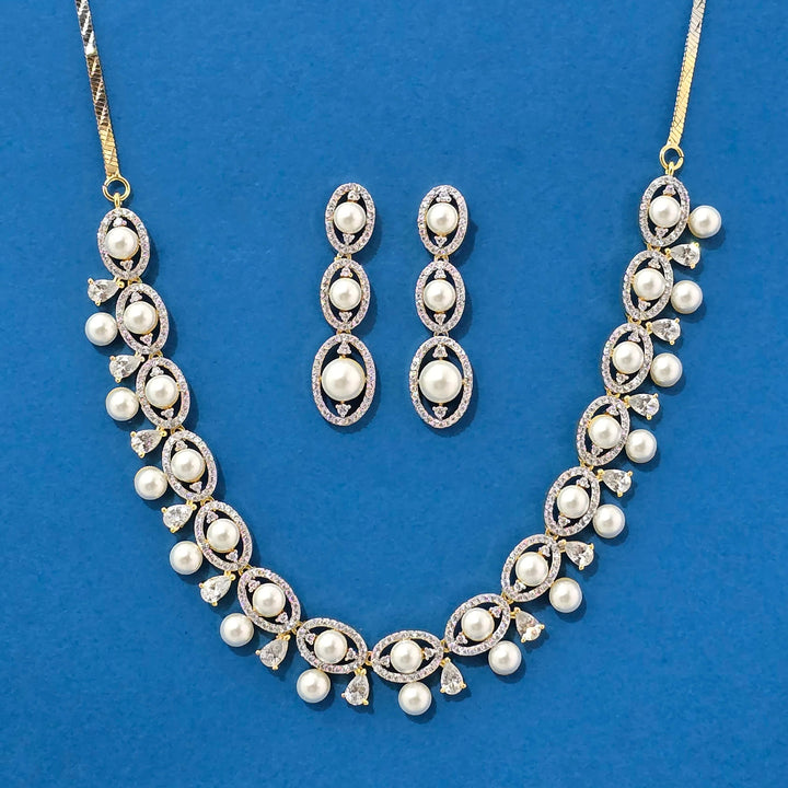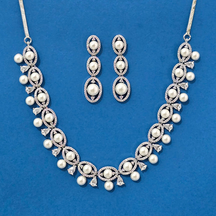 Weight: 40.0 Grams, Earring Height = 45 mm || Width = 11 mm,Regular Size And Adjustable,Bollywood Look,2 Tone Plating,Rhodium Plating,American Diamond Necklace Set