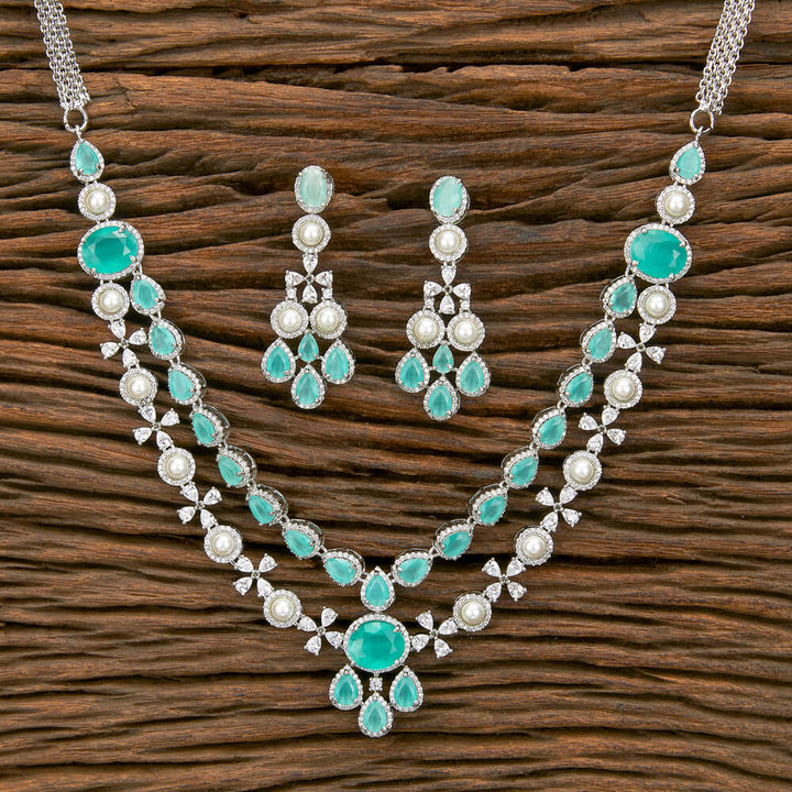 Weight: 64.0 Grams, Regular Size And Adjustable,Bollywood Style,American Diamond Necklace Set
