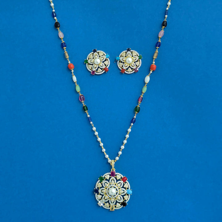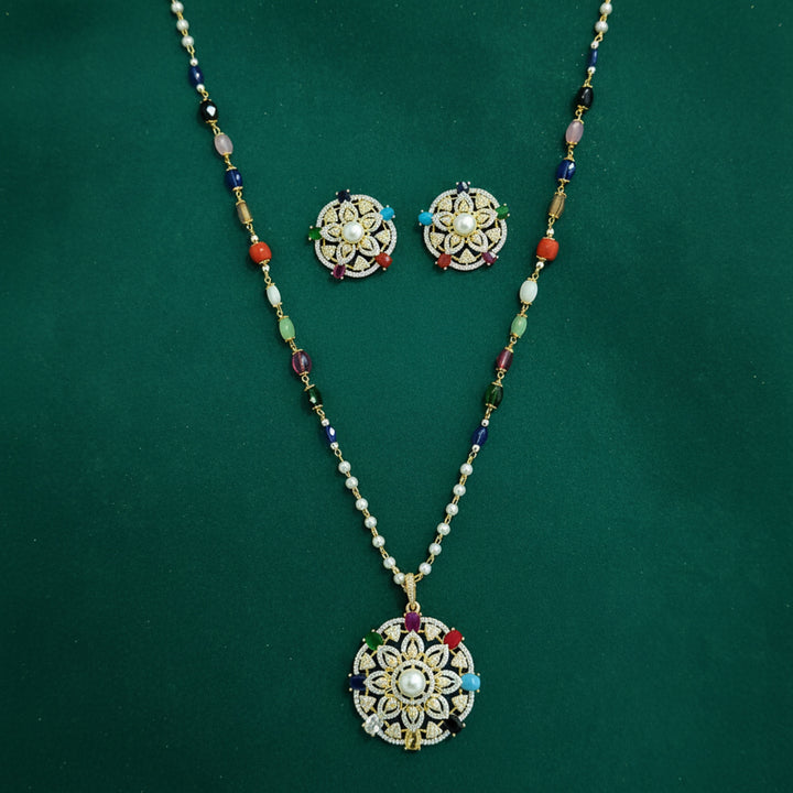 439664 Cz Moti Pendant Set With 2 Tone Plating