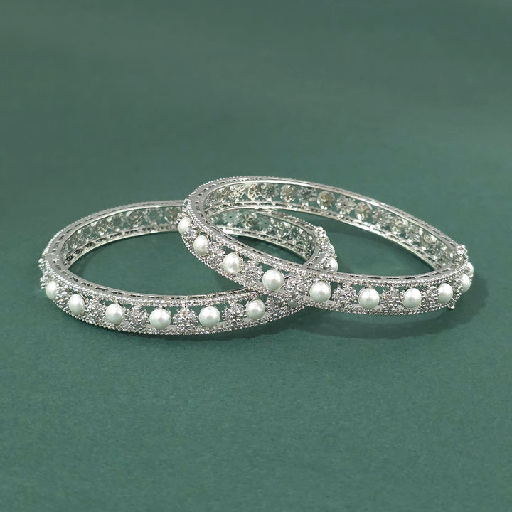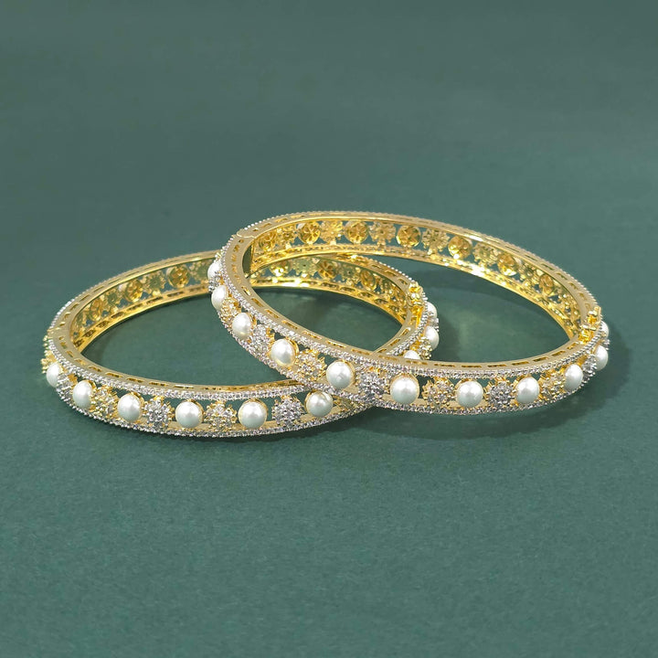 Weight: 36.0 Grams, 2 Pc Bangle,Moti Bangle,2 Tone Plating,Rhodium Plating,American Diamond Bangle
