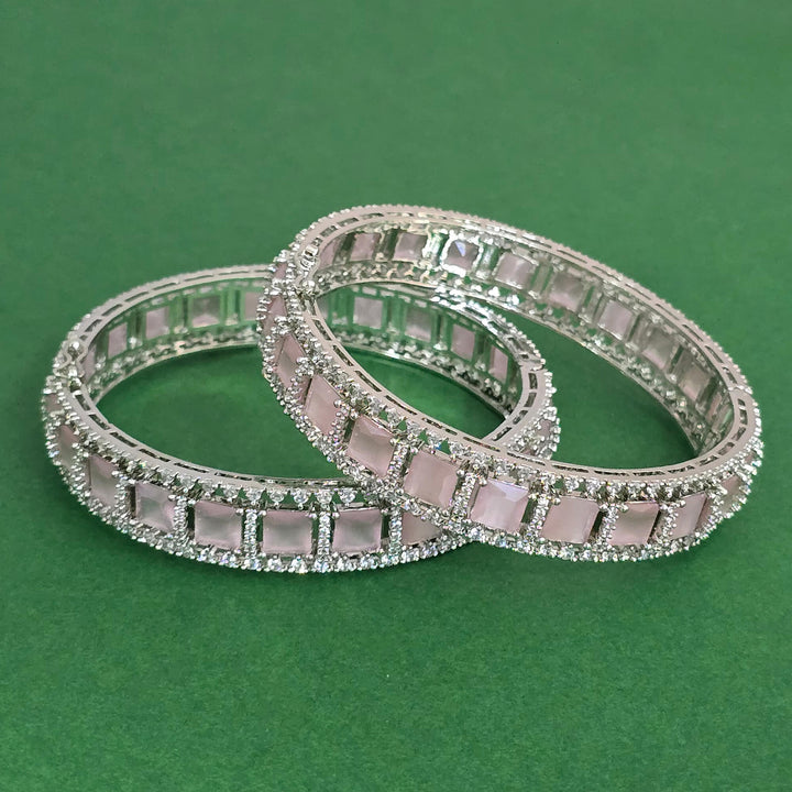 Weight: 64.0 Grams, 2 Pc Bangle,Openable Bangle,Rhodium Plating,American Diamond Bangle