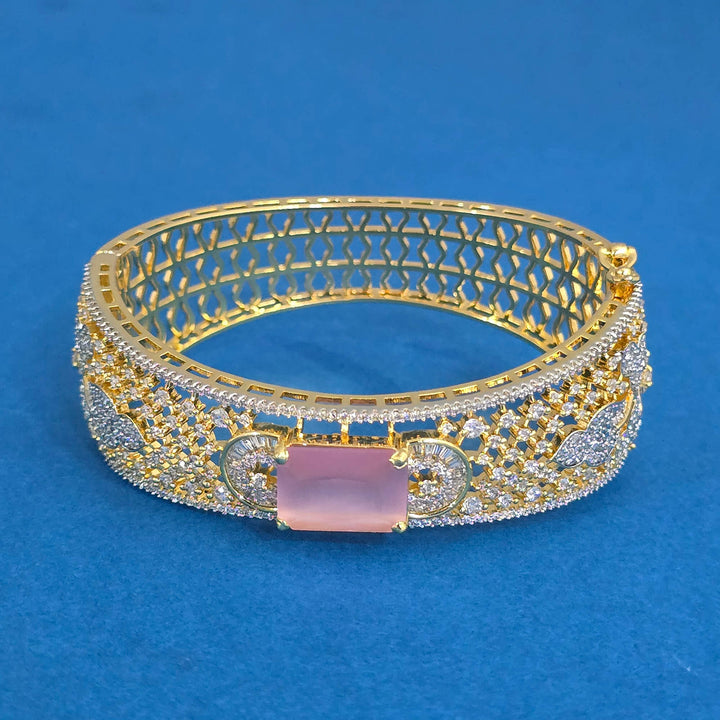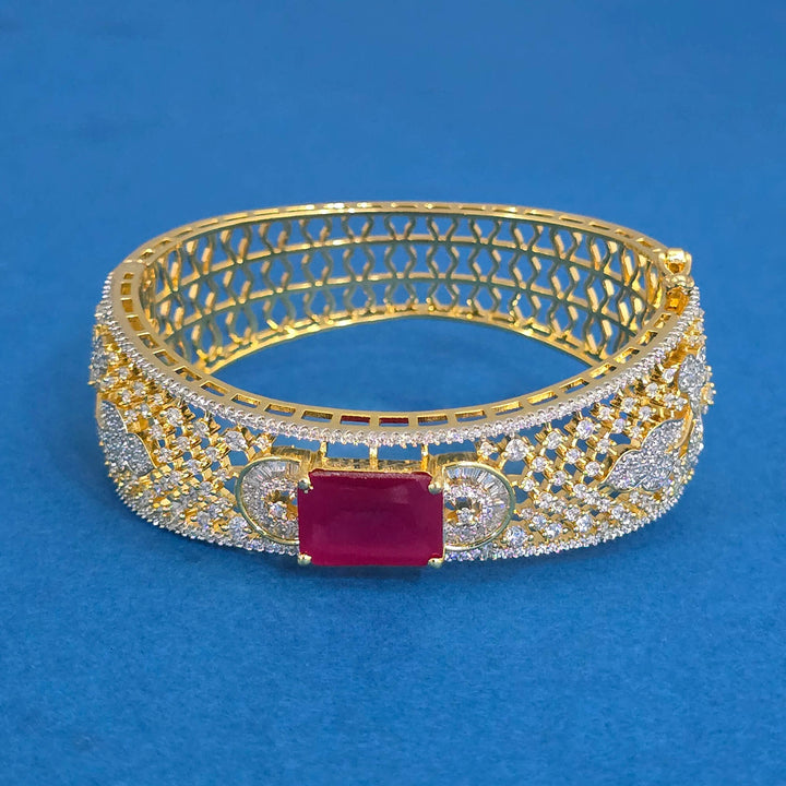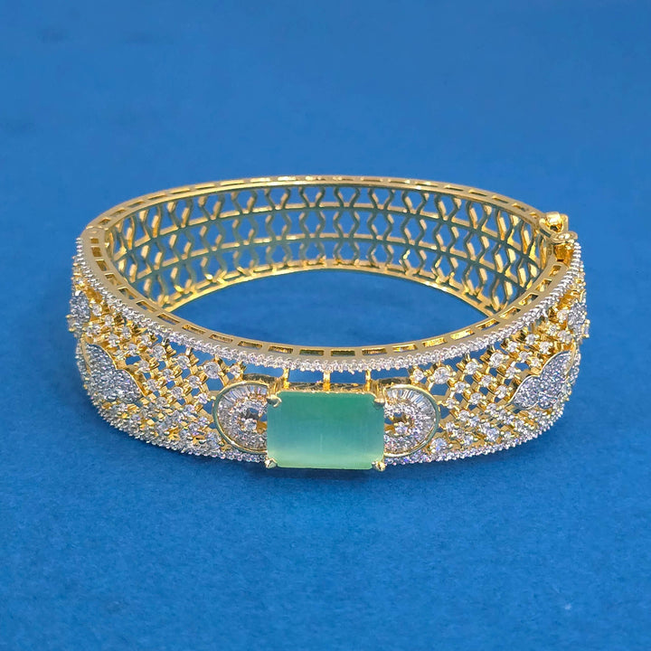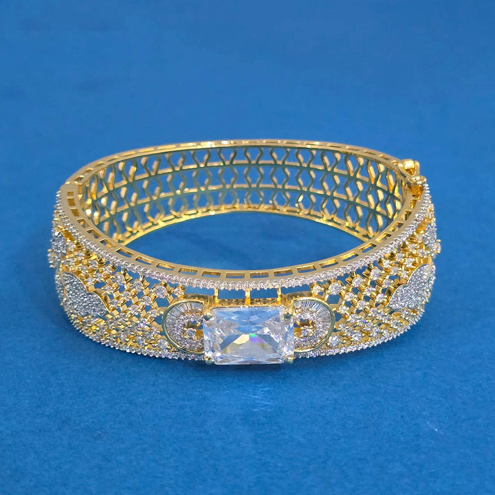 Weight: 28.0 Grams, Height = 46 Mm || Width = 55 Mm,Broad Kada,2 Tone Plating,American Diamond Kada