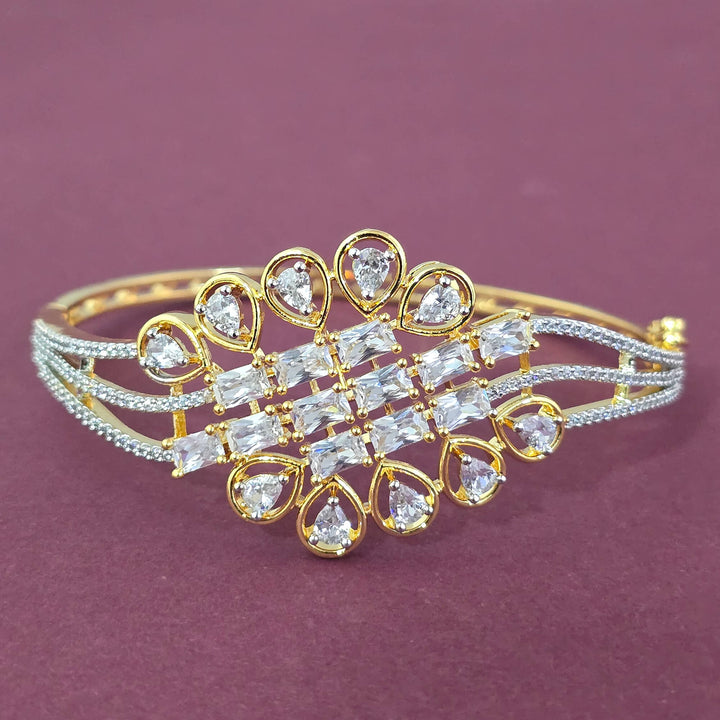 Weight: 14.0 Grams, Height = 49 mm || Width = 60 mm,Trendy Look,2 Tone Plating,American Diamond Kada