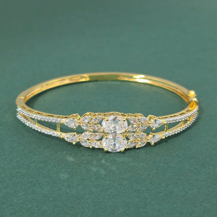 Weight: 10.0 Grams, Height = 49 mm || Width = 58 mm,2 Pc Bangle,Classic Design,2 Tone Plating,American Diamond Kada
