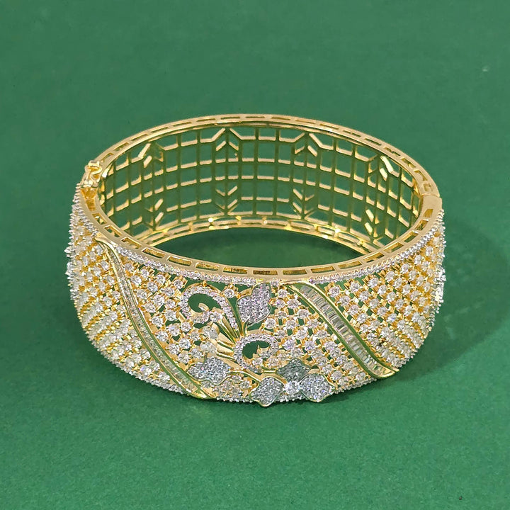 Weight: 34.0 Grams, Height = 46 Mm || Width = 57 Mm,Broad Kada,2 Tone Plating,American Diamond Kada