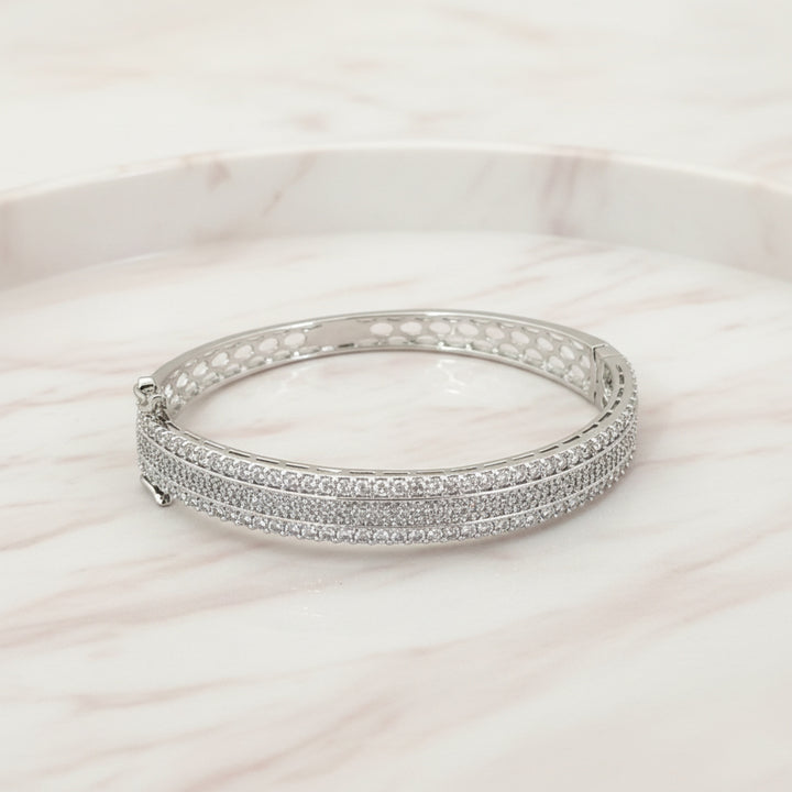 439288 Cz Openable Kada With 2 Tone Rhodium Plating