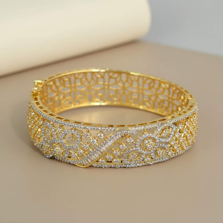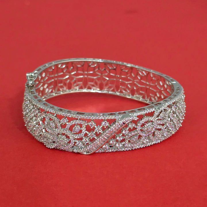 Weight: 21.0 Grams, Height = 47 Mm || Width = 56 Mm,Classic Kada,2 Tone Plating,Rhodium Plating,American Diamond Kada