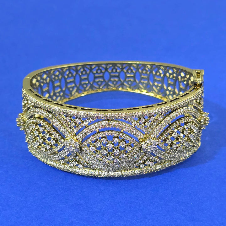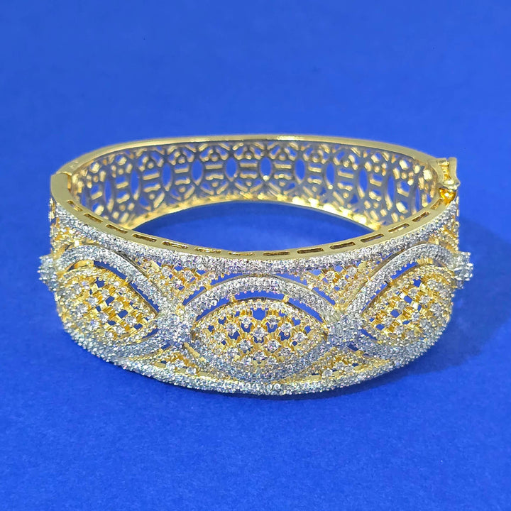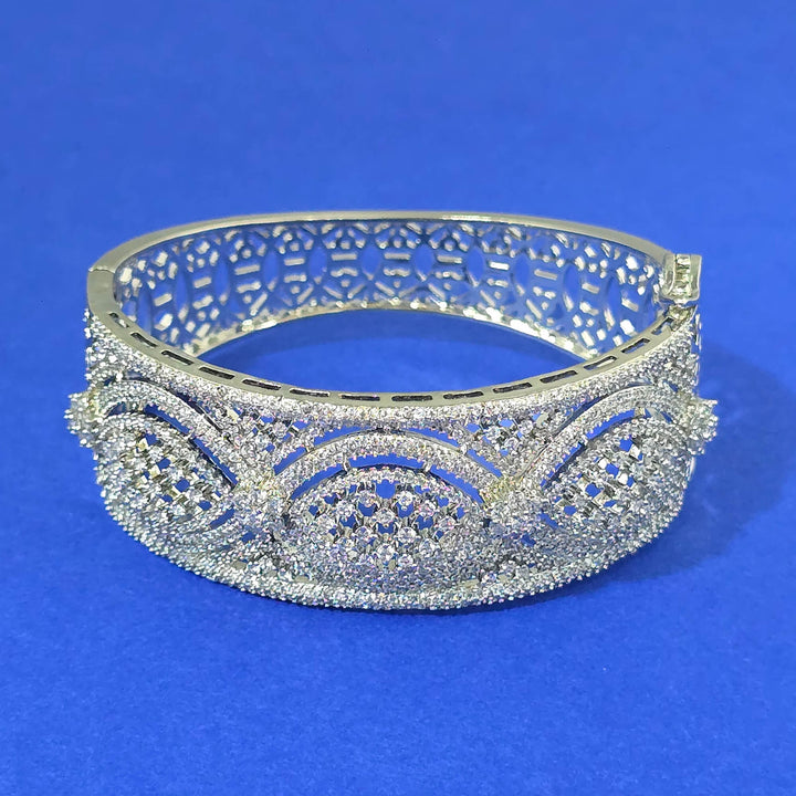 Weight: 32.0 Grams, Height = 48 Mm || Width = 56 Mm,Broad Kada,Mehndi Plating,2 Tone Plating,Rhodium Plating,American Diamond Kada
