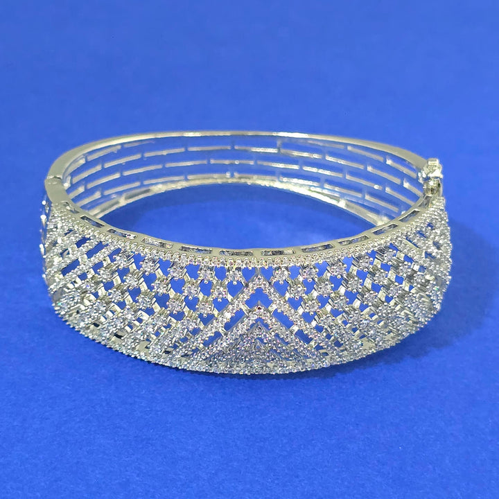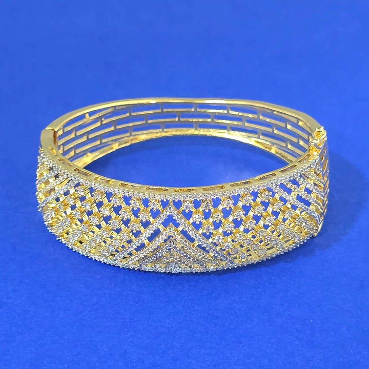 Weight: 26.0 Grams, Height = 47 Mm || Width = 57 Mm,Classic Design,Mehndi Plating,2 Tone Plating,Rhodium Plating,American Diamond Kada