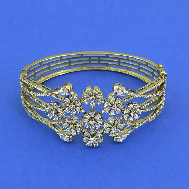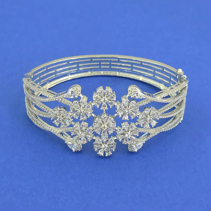 442484 Cz Openable Kada With Mehndi 2 Tone Rhodium Plating